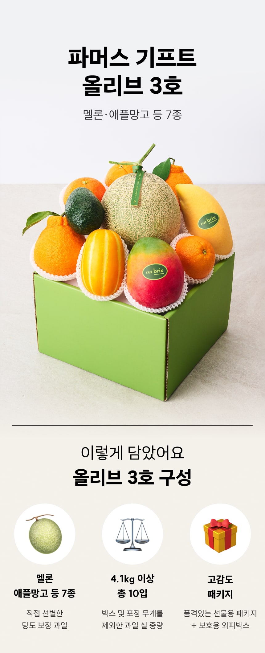 프리미엄 과일선물세트7종 올리브3호 (멜론,애플망고) 4.1kg이상