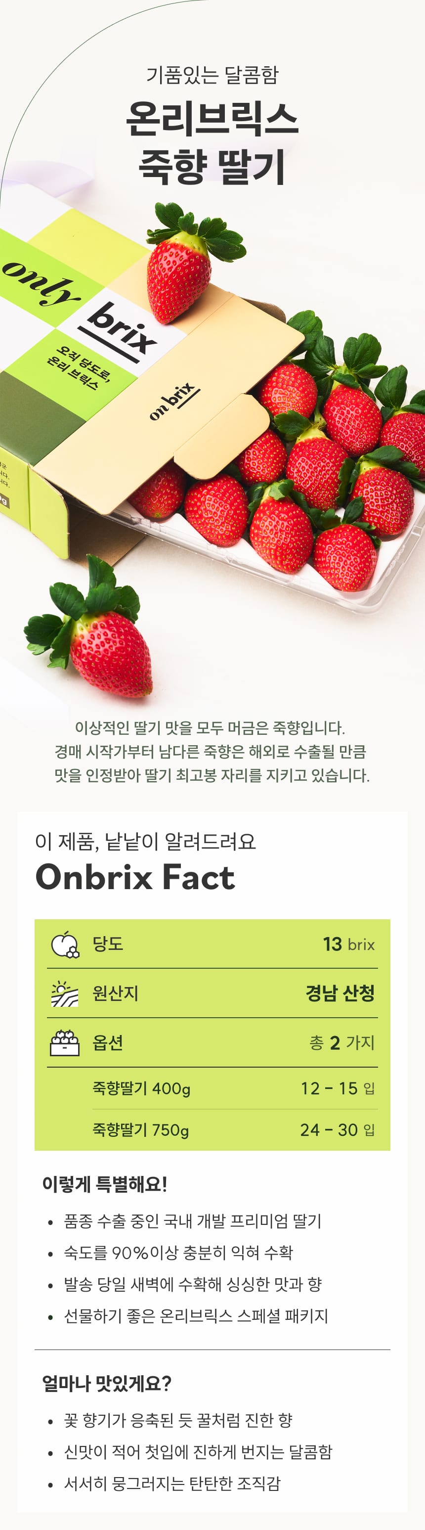 [산지직송] 꿀처럼 달콤한, 온리브릭스 산청 죽향 딸기 400g / 750g(특품)