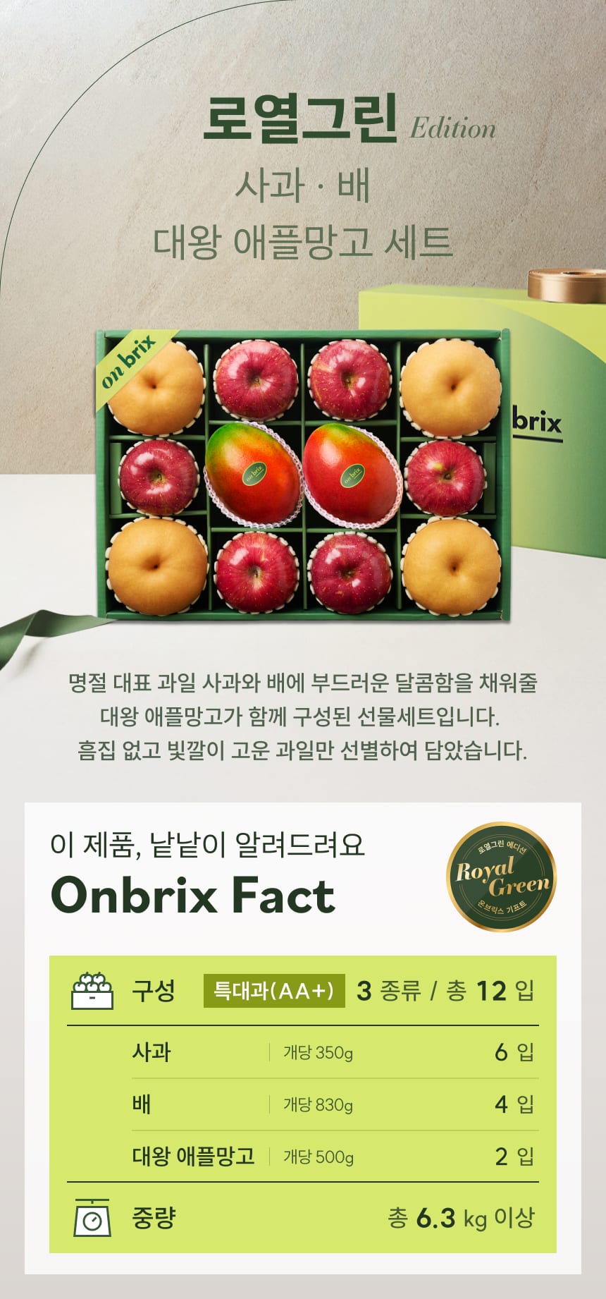 로열그린 에디션, 사과&배&왕망고 선물세트 6.3kg이상(12입/특품)