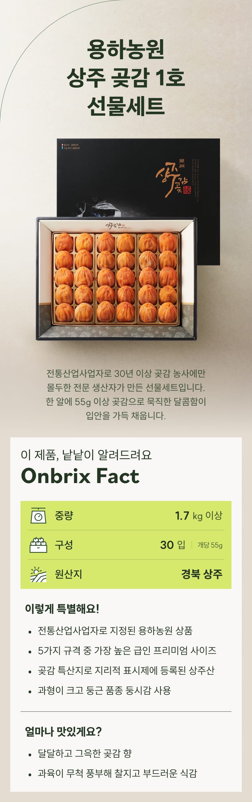 30년 전통 상주 고품격 곶감 1호 선물세트 30입(개당 55g이상/특품)