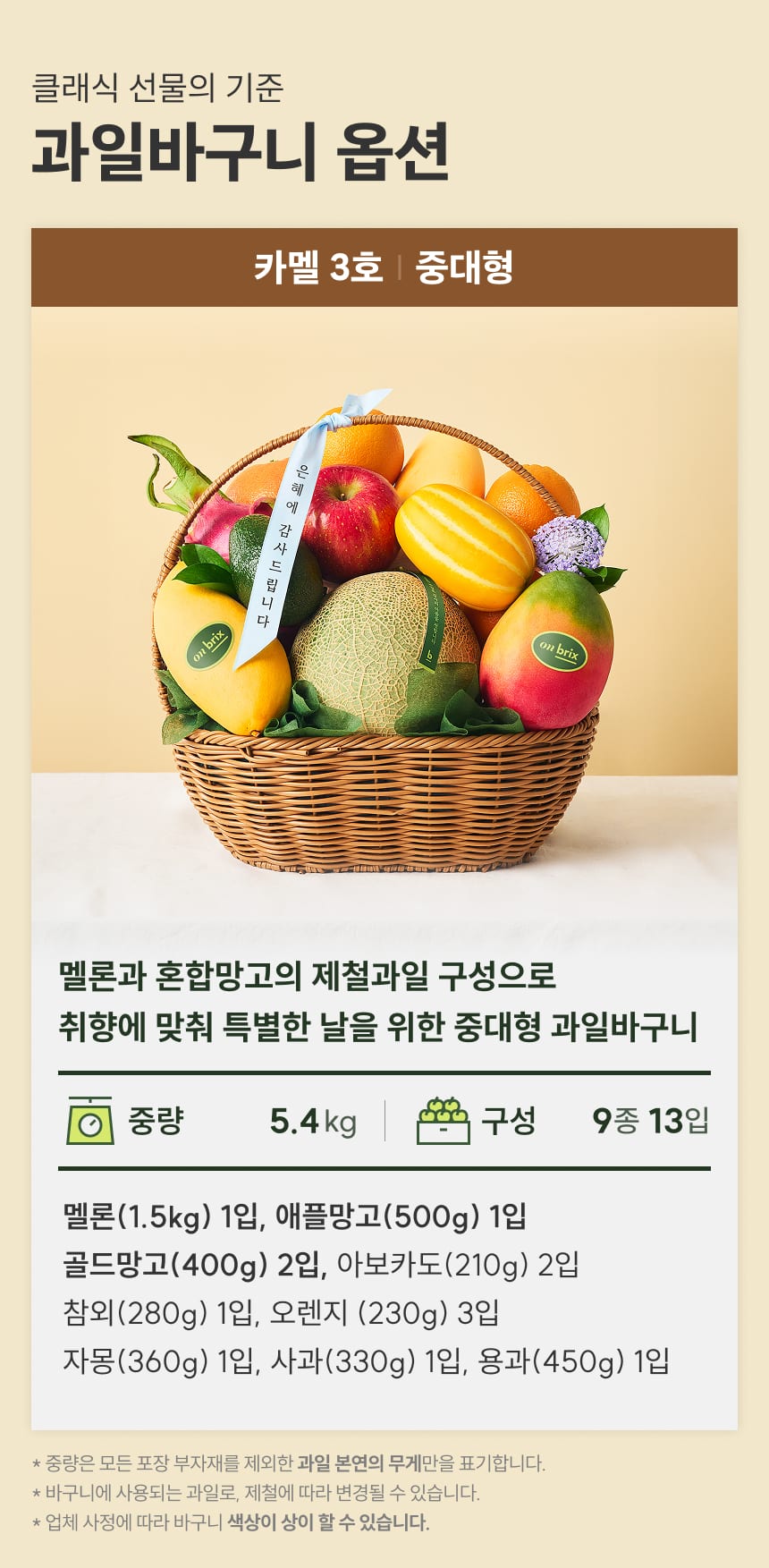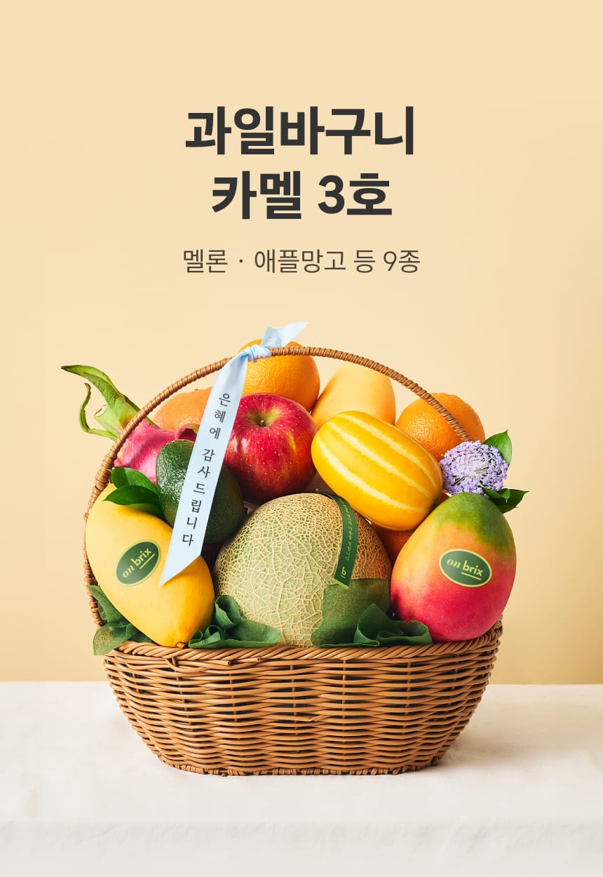 [새벽에On] 과일바구니, 카멜3호 9종 5.4kg이상(멜론,애플망고)