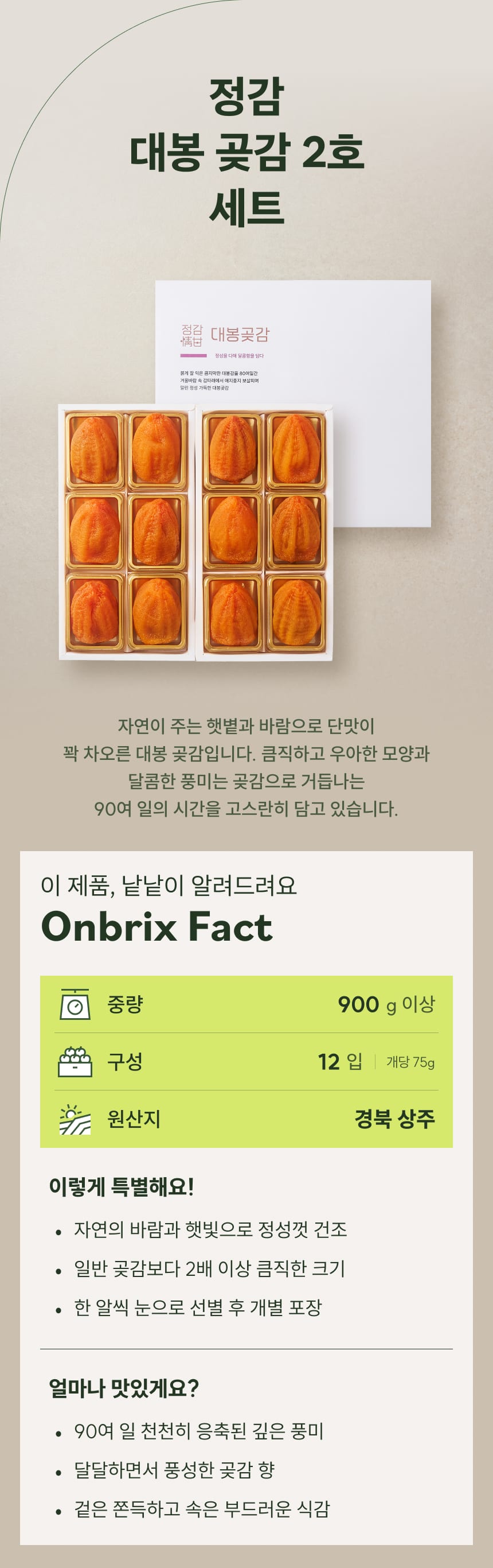 90일의 정성, 프리미엄 정감 대봉 곶감 2호 선물세트 12입(개당 75g이상/특품)