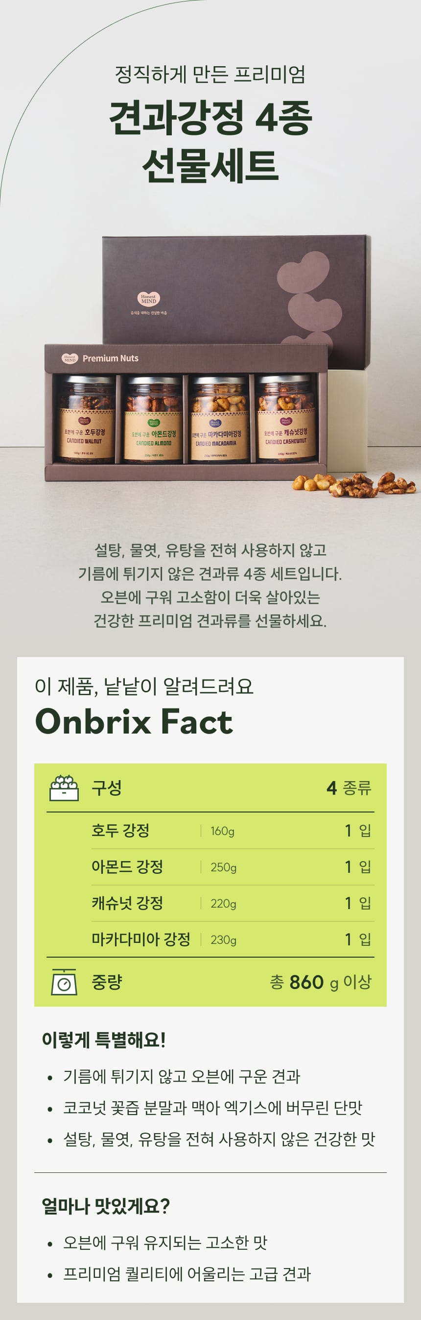 프리미엄 견과강정 4종 선물세트(호두강정,아몬드강정,캐슈넛강정,마카다미아강정)