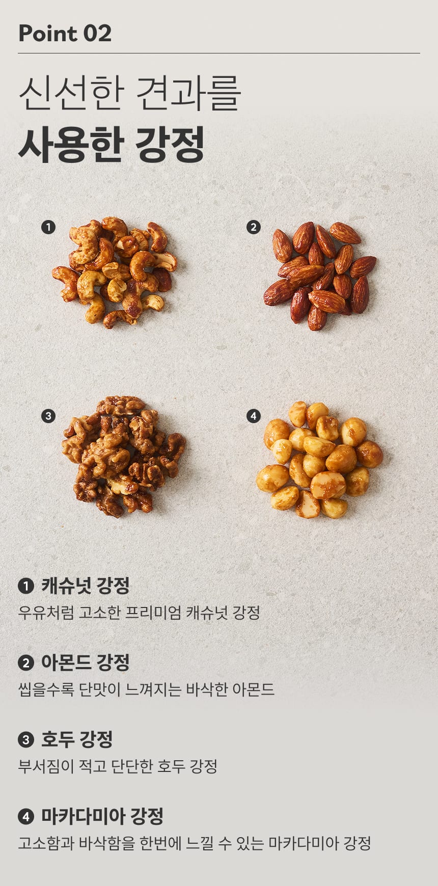 견과류 좋아하는데, 종류별로 4종 구성이라 골고루 먹을 수 있어 좋아요 맛도 좋네여