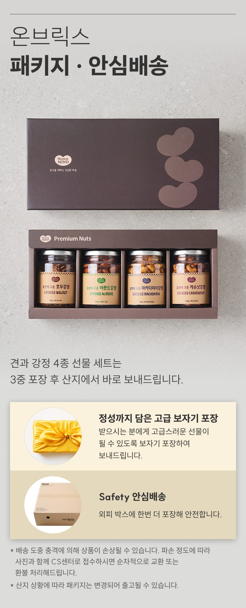 • 프리미엄 견과강정 4종 선물세트(호두강정,아몬드강정,캐슈넛강정,마카다미아강정)