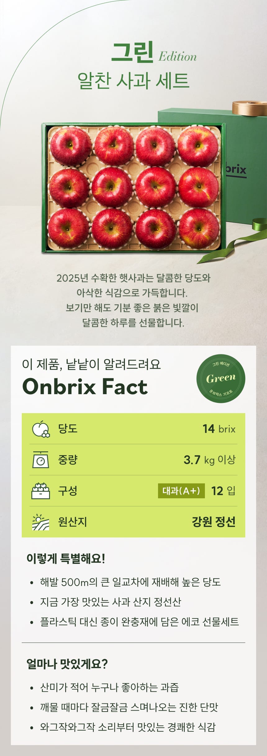 [산지직송] 그린 에디션, 알찬 사과 선물세트 3.7kg이상(12입/특품)