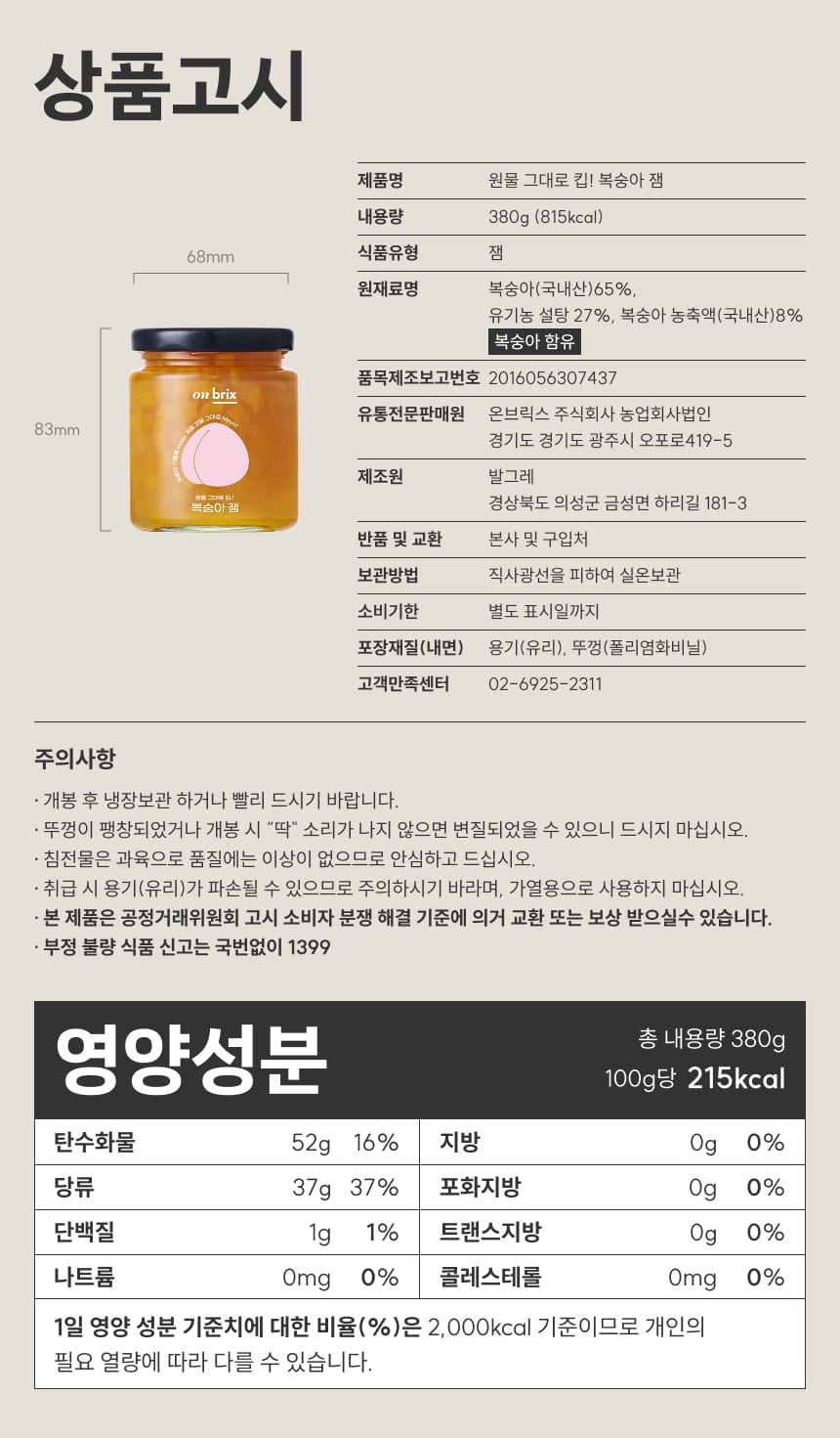 상품명 | 복숭아 병조림·잼 선물세트 |