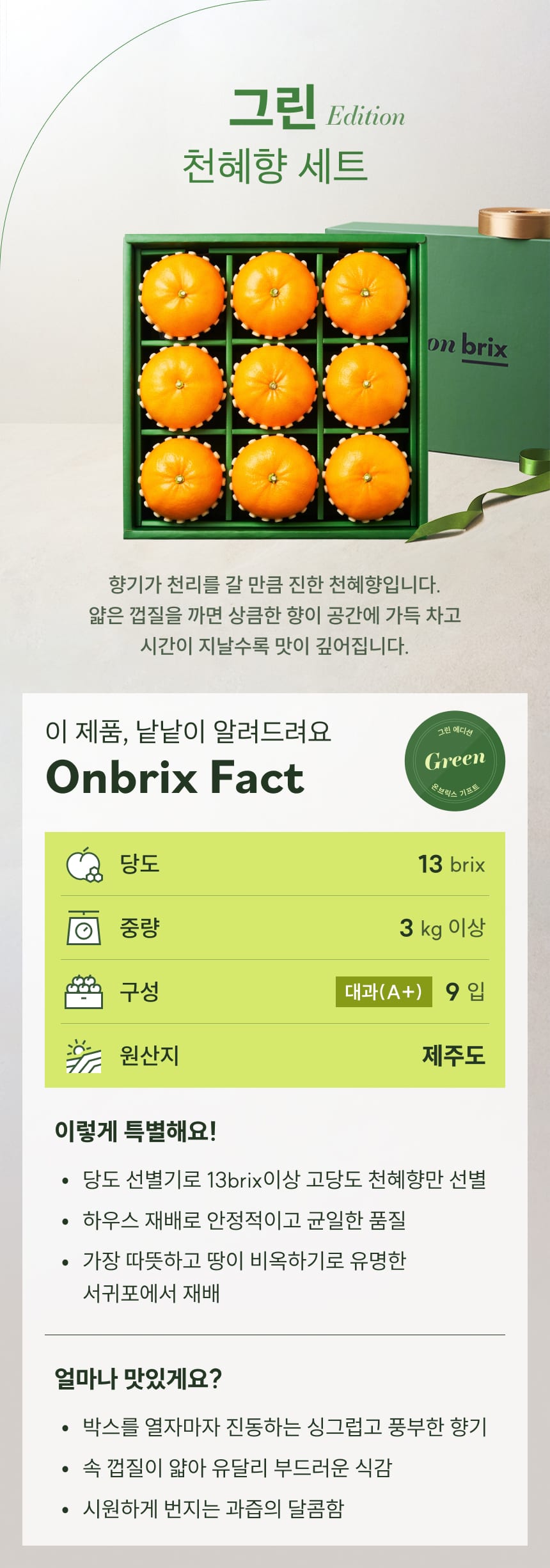 118 [설 선물] 그린 에디션, 프리미엄 천혜향 선물세트 3kg이상(9입)