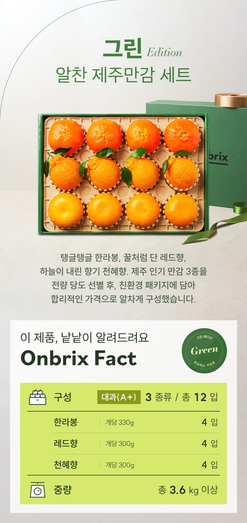 040 [설 선물] 그린 에디션, 알찬 제주과일 혼합세트 3.6kg이상(12입)