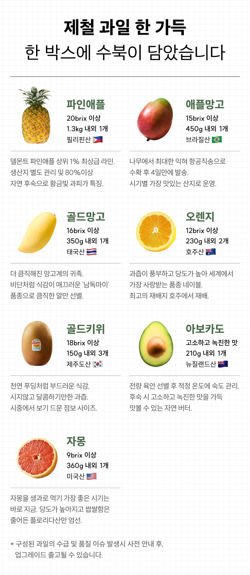 품질 기준 미달 시 배송이 지연될 수 있습니다. 해당 사항은 사전에 개별 안내 드립니다.