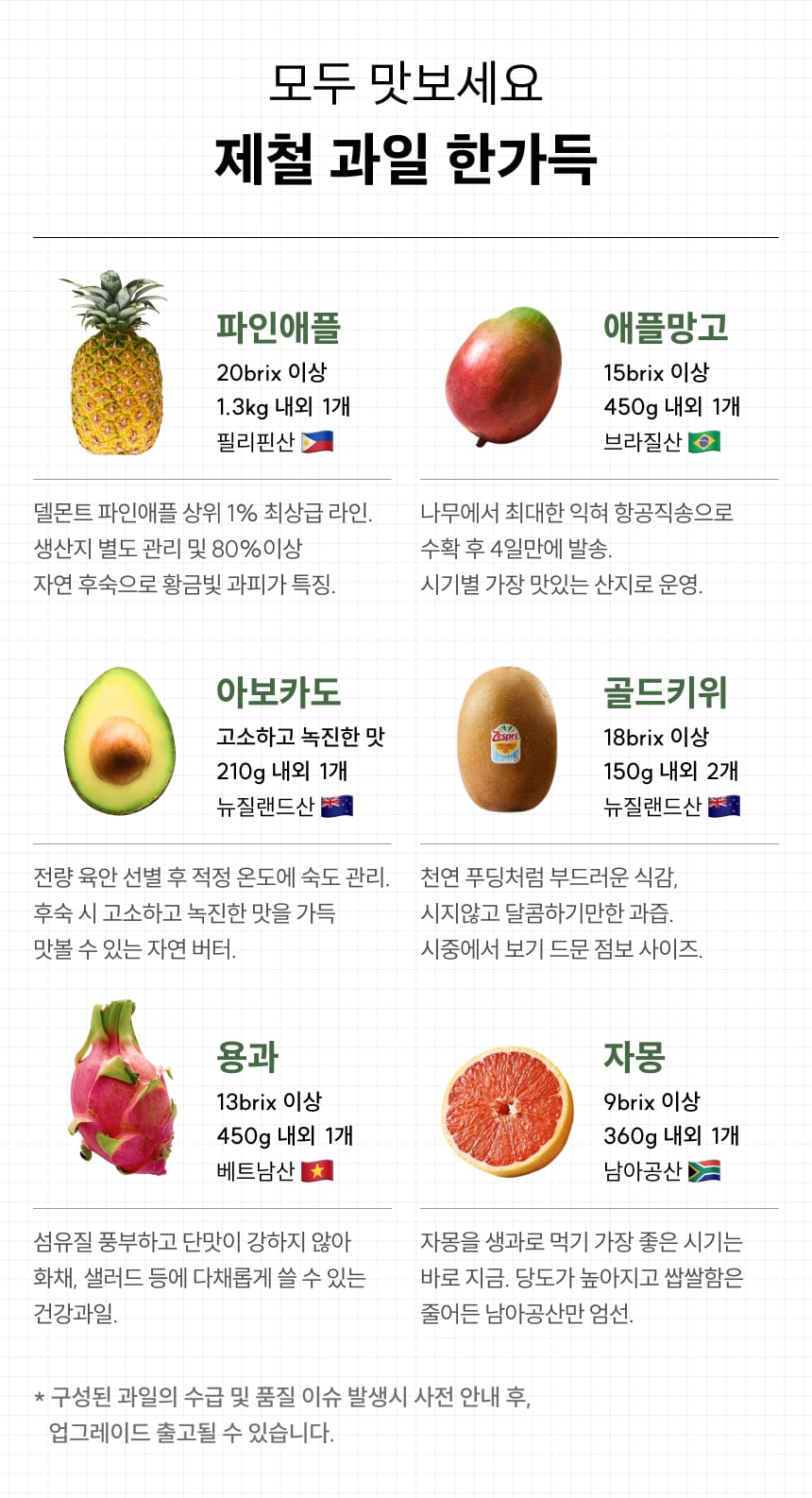 태국 산지 골드망고 수급 이슈로 인하여 사전 안내 후, 애플망고로 업그레이드하여 대체 출고될 수 있습니다.
