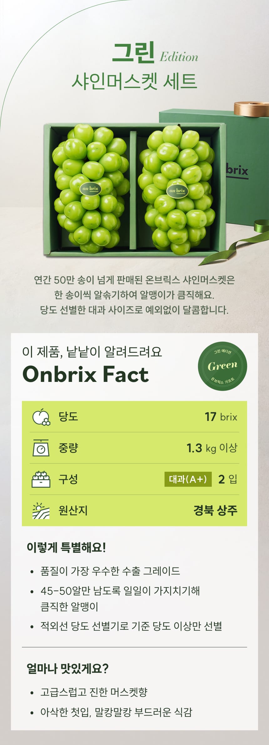 [산지직송] 그린 에디션, 프리미엄 고당도 샤인머스켓 선물세트 1.3kg이상(2송이/특품)
