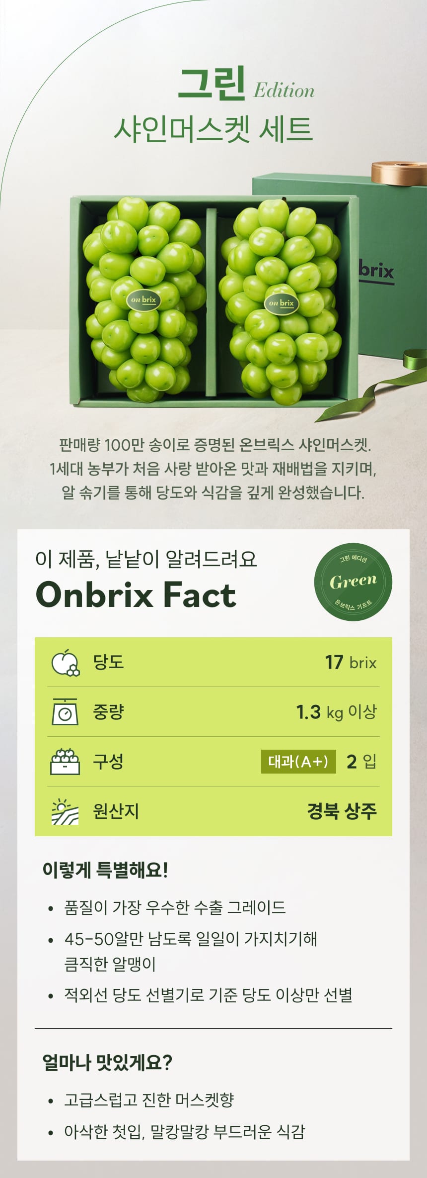 035 [설 선물] 그린 에디션, 프리미엄 고당도 샤인머스켓 선물세트 1.3kg이상(2송이/특품)