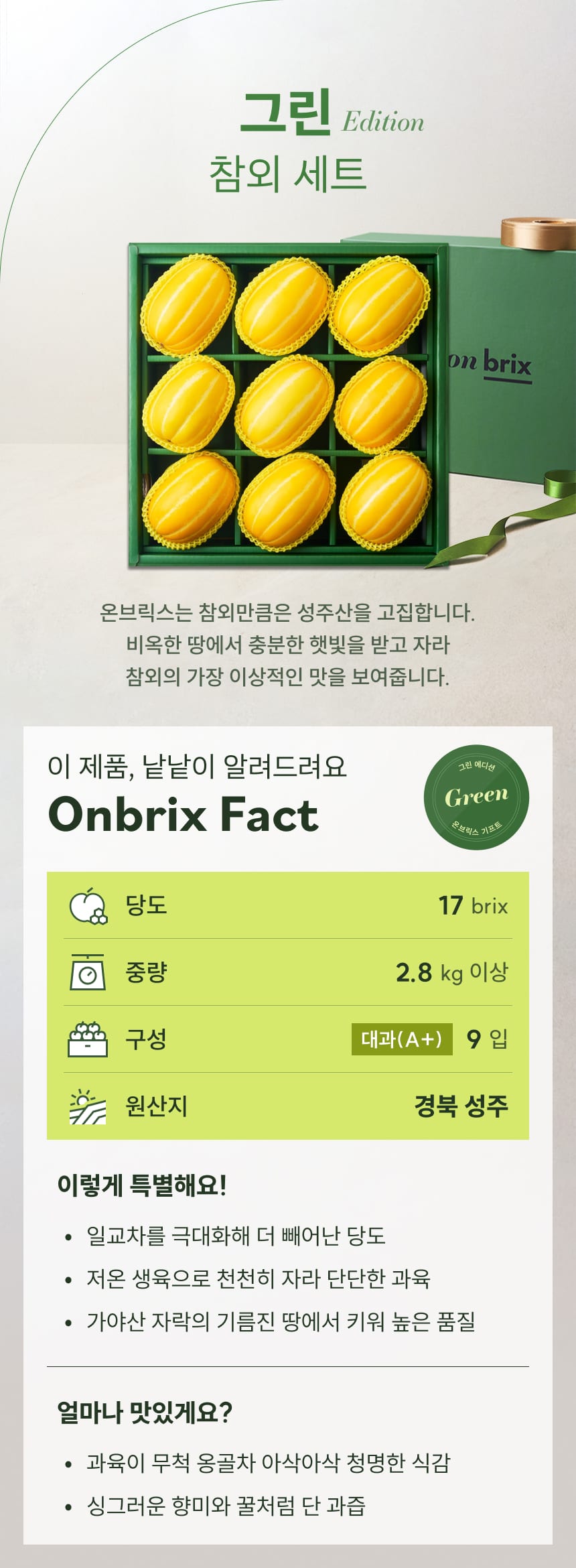 그린 에디션, 고당도 성주 참외 선물세트 2.8kg이상(9입/로열과)
