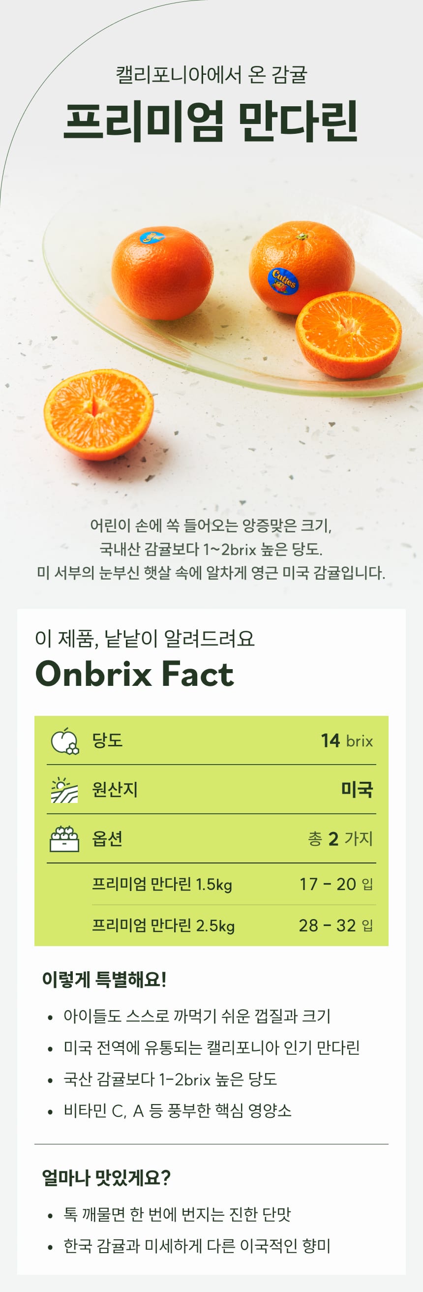 [새벽에On] 캘리포니아에서 온 감귤, 프리미엄 만다린 1.5kg / 2.5kg
