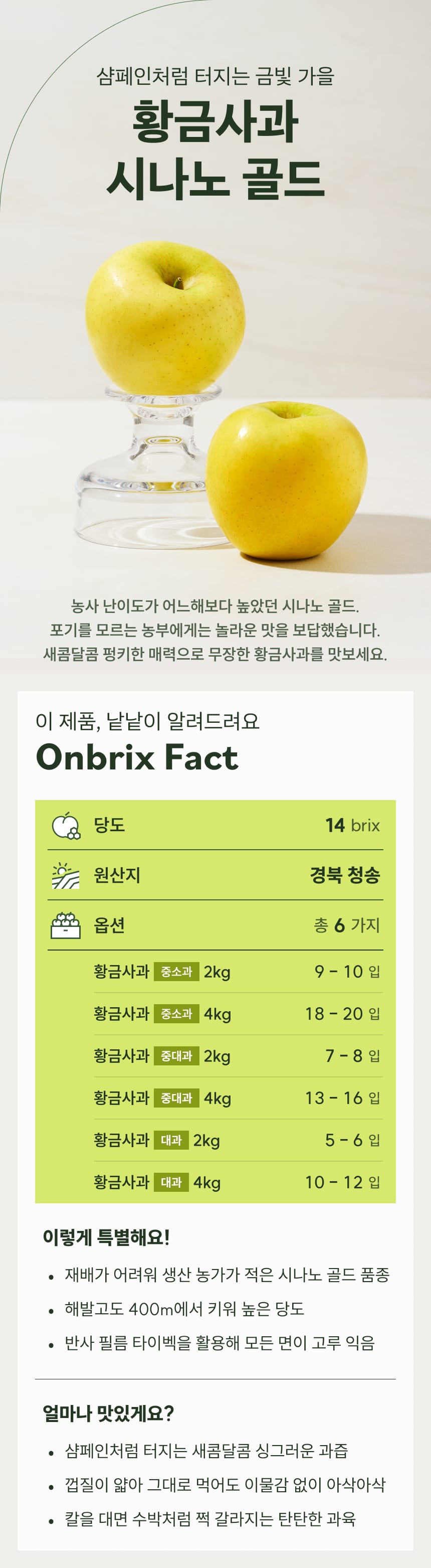[새벽에On] 황금빛 사과, 고당도 시나노골드 황금사과 2kg / 4kg