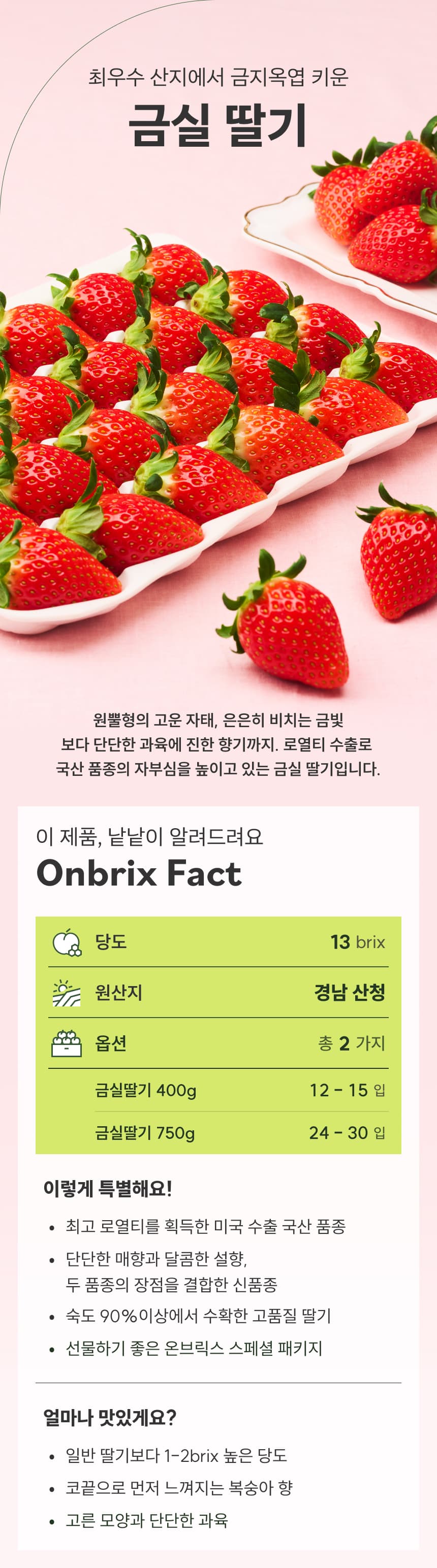 [아침 수확, 새벽 도착] 국내 최고급 품종, 고당도 산청 금실 딸기 400g / 750g (특품)