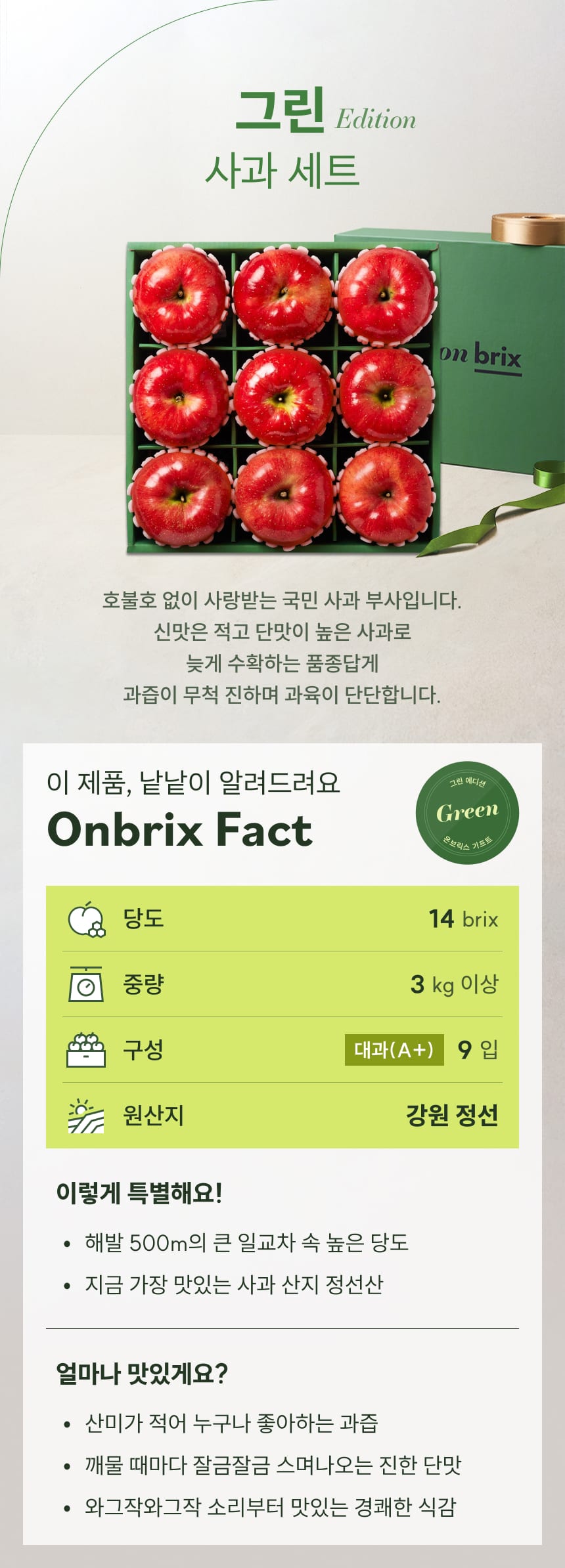 021 [설 선물] 그린 에디션, 프리미엄 사과 선물세트 3kg이상(9입/특품)