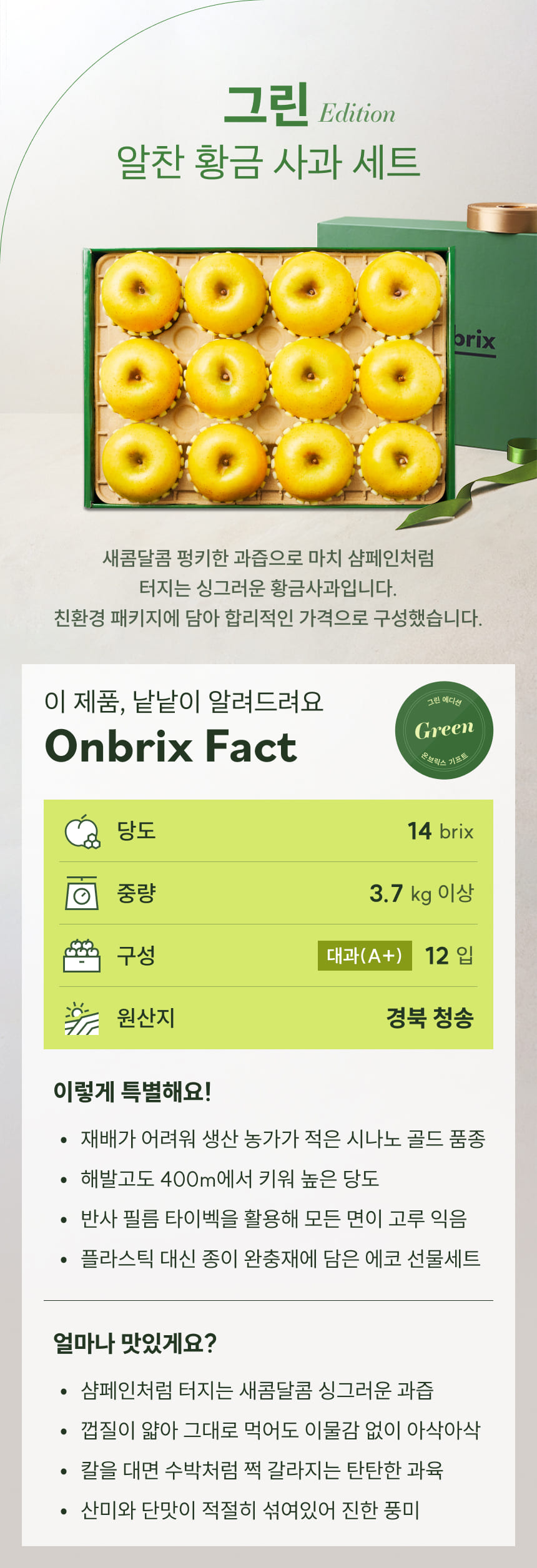 038 [설 선물] 그린 에디션, 알찬 황금사과 선물세트 3.7kg이상(12입/특품)