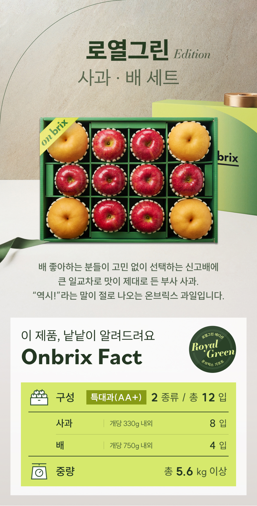 [새벽에On] 로열그린 에디션, 사과&배 선물세트 5.6kg이상(12입/특품)