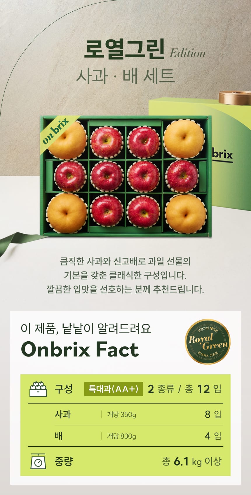 로열그린 에디션, 사과&배 선물세트 6.1kg이상(12입/특품)