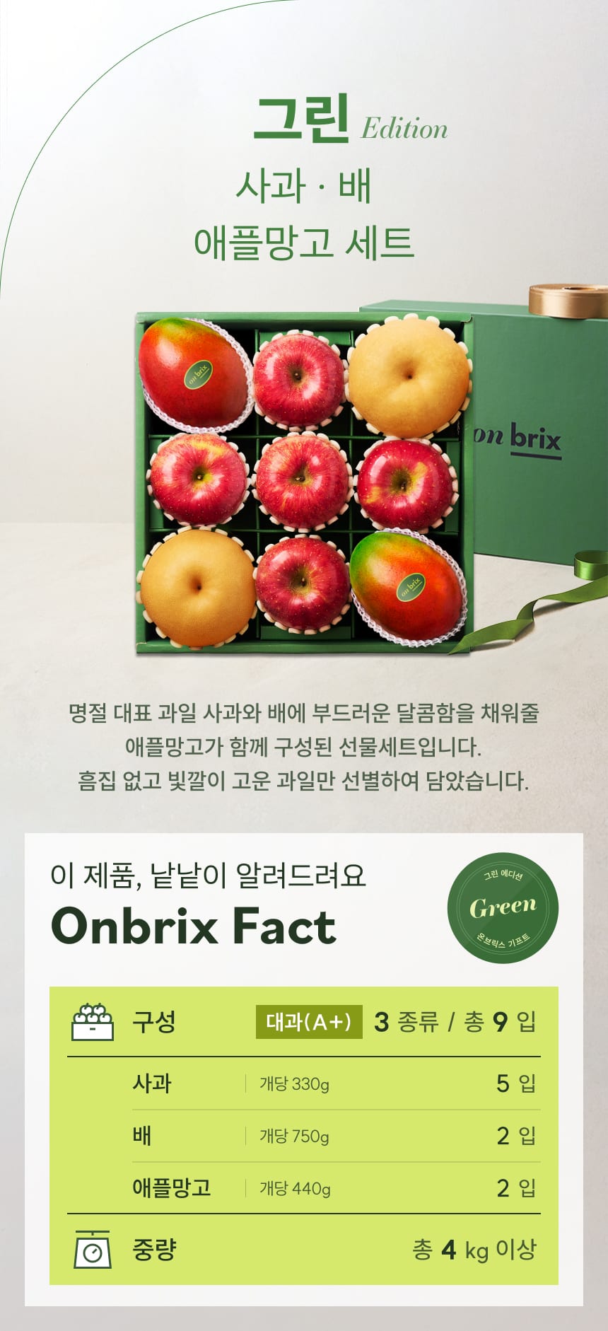 • 그린 에디션, 프리미엄 사과&배&애플망고 선물세트 4kg이상(9입/특품)