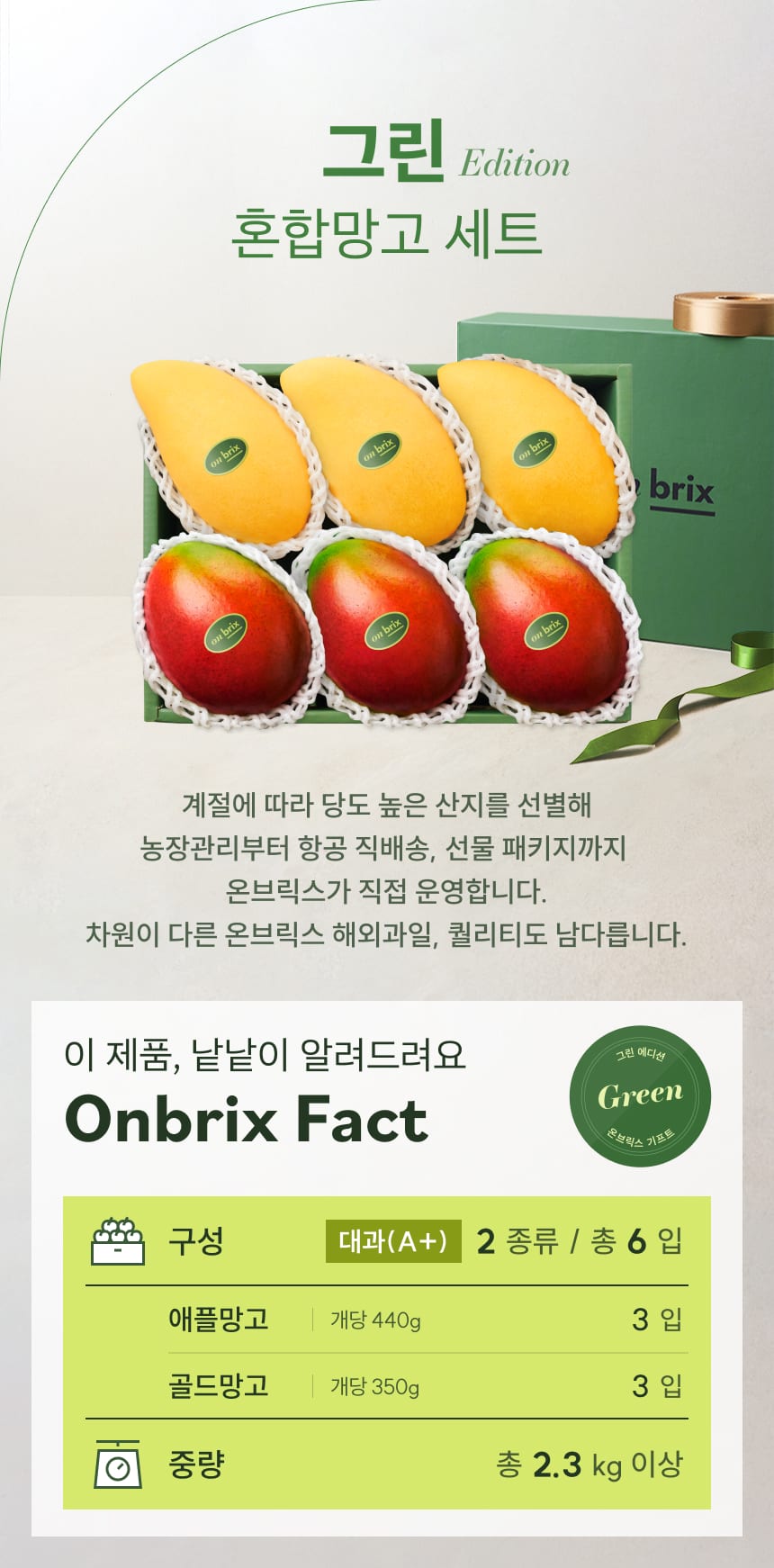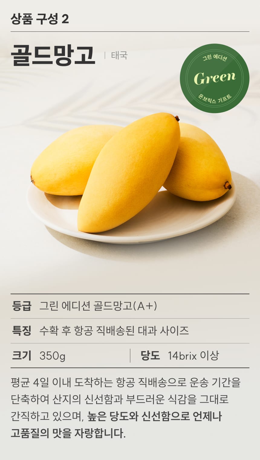 025 [설 선물] 그린 에디션, 프리미엄 애플망고&태국망고 선물세트 2.3kg이상(6입/특품)