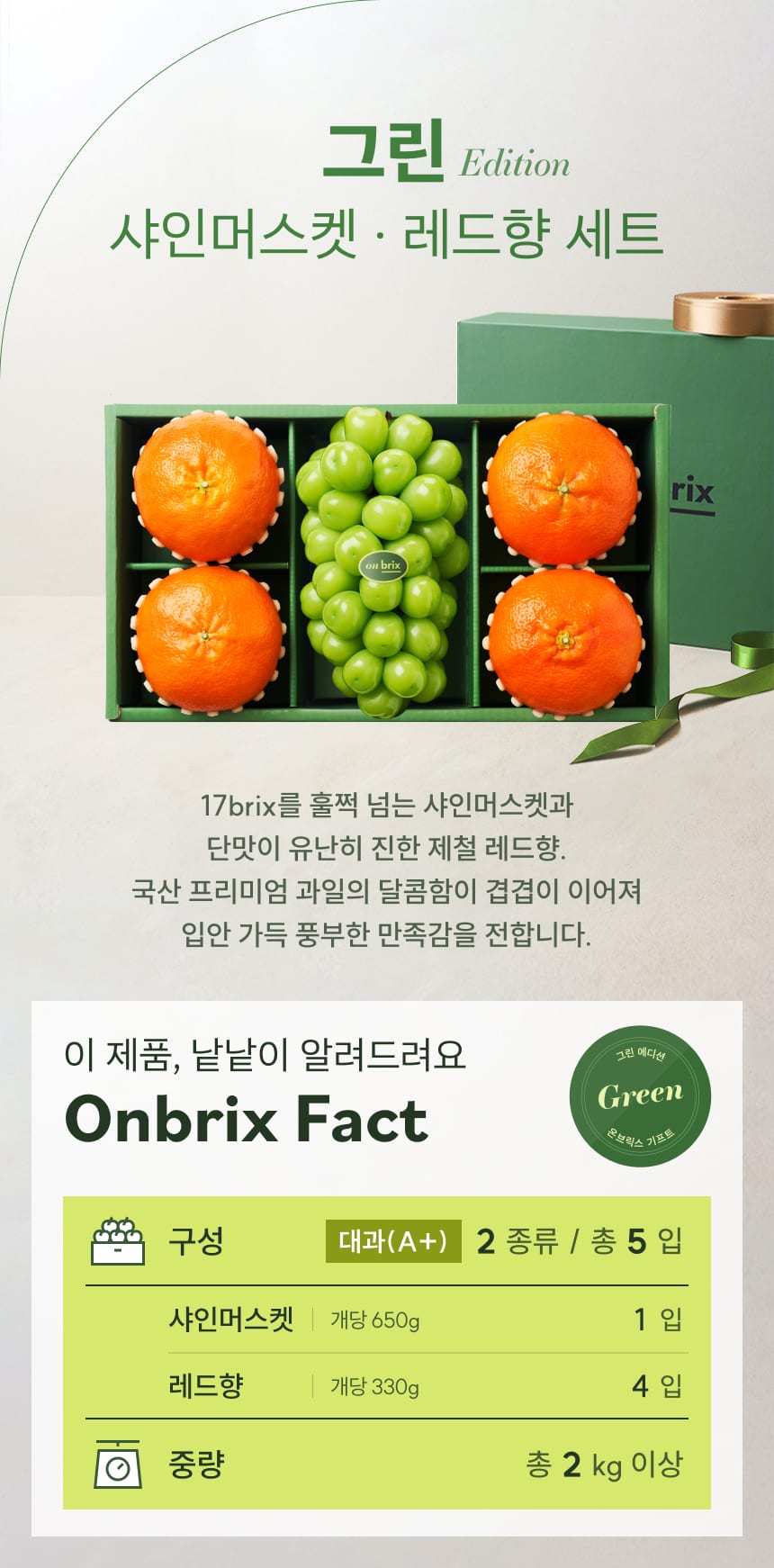 031 [설 선물] 그린 에디션, 프리미엄 샤인머스켓&레드향 선물세트 2kg이상(5입)