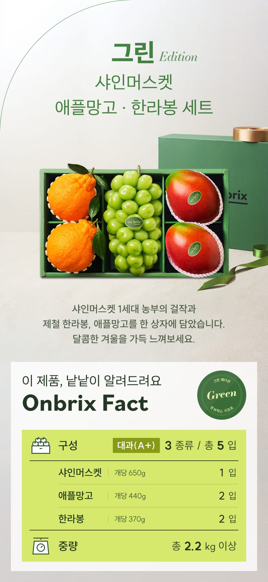 125 [설 선물] 그린 에디션, 프리미엄 샤인머스켓&애플망고&한라봉 선물세트 2.2kg이상(5입)