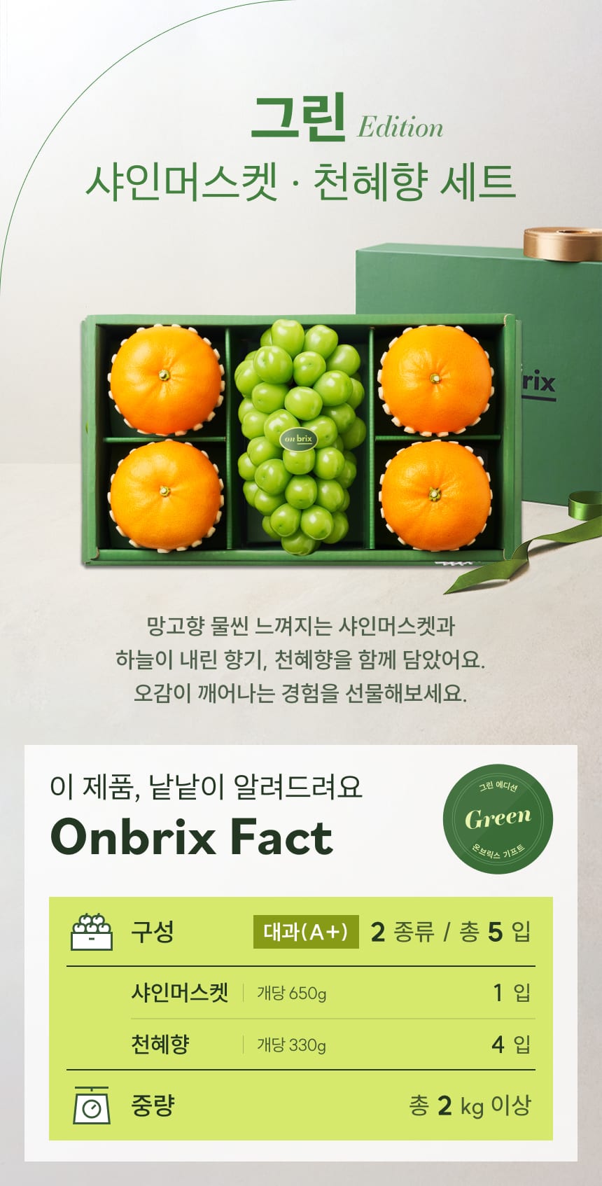 123 [설 선물] 그린 에디션, 프리미엄 샤인머스켓&천혜향 선물세트 2kg이상(5입)