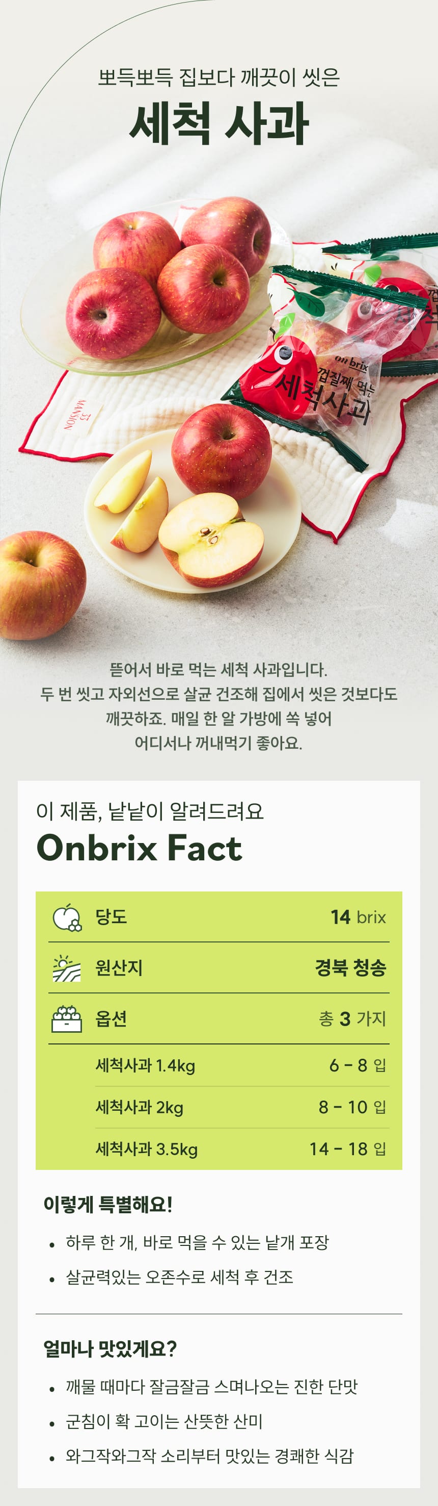 [새벽에On] 껍질째 먹는 세척 사과 1.4kg / 2kg /3.5kg