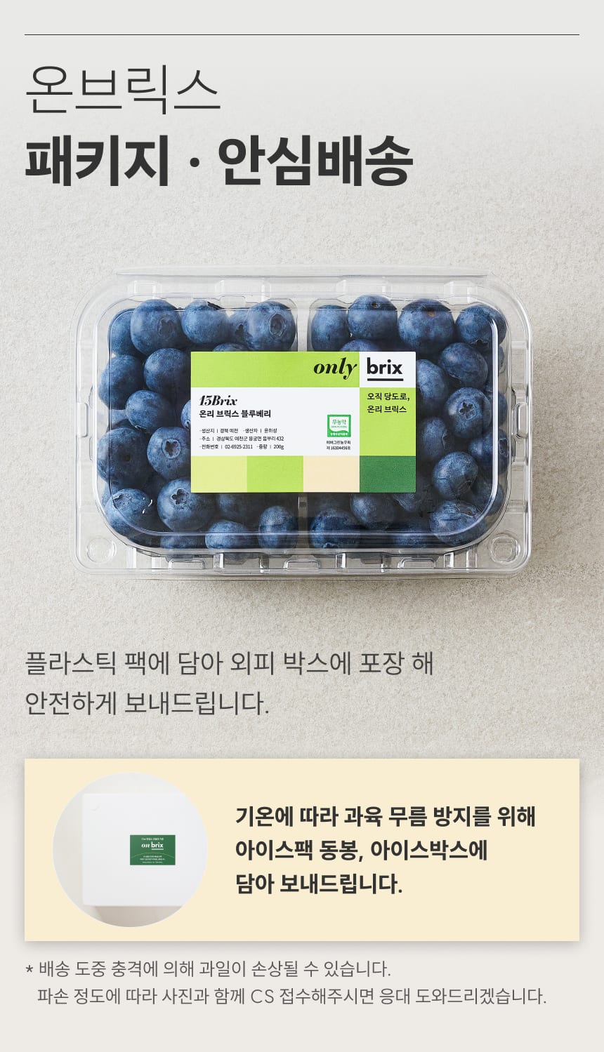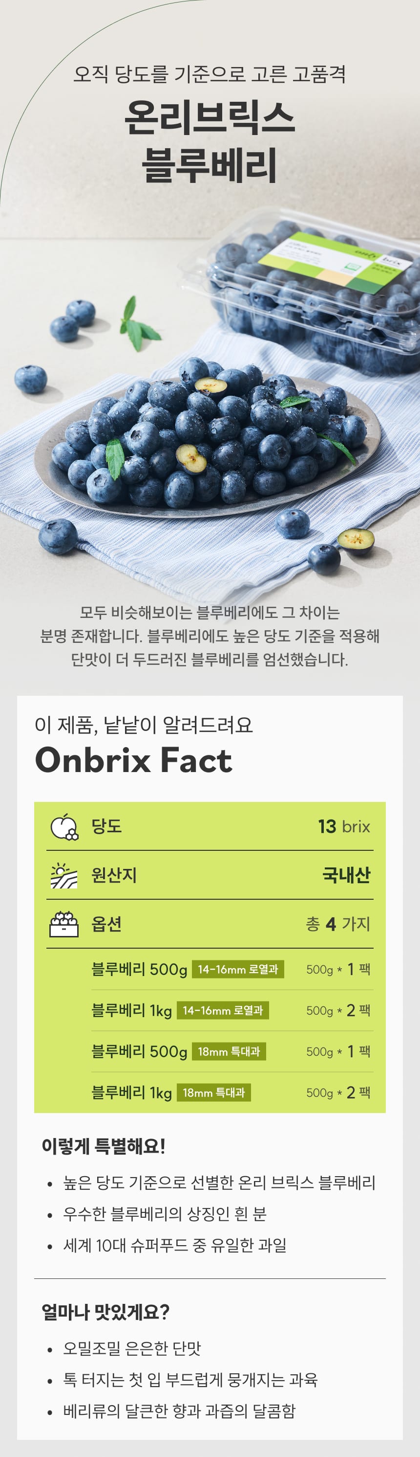[산지직송] 품종부터 차별화, 온리브릭스 친환경 블루베리 500g/1kg (로열과/특대과)