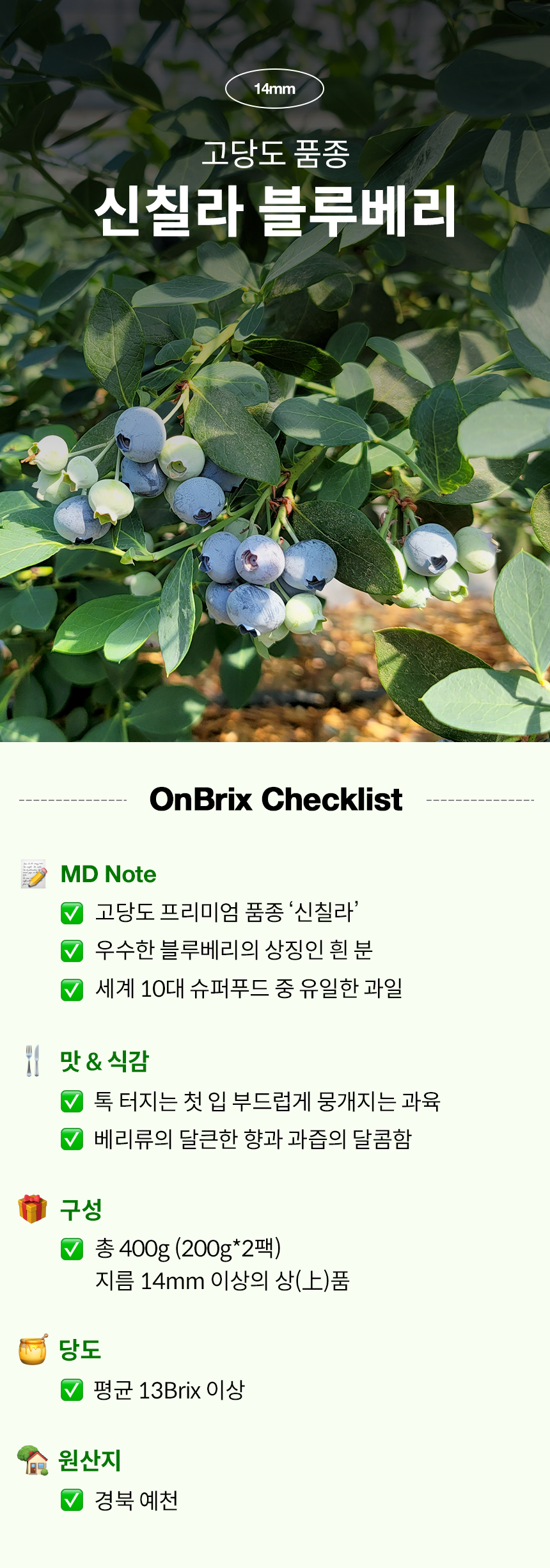품종부터 차별화, 신칠라 고당도 블루베리 400g이상(14mm/특품)