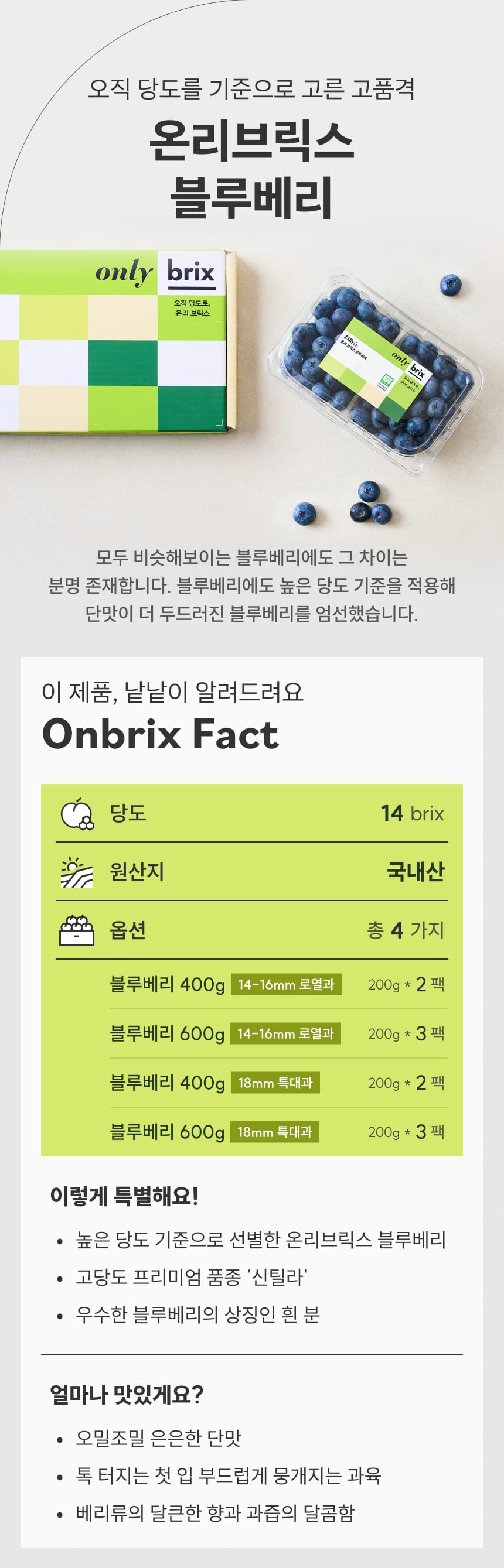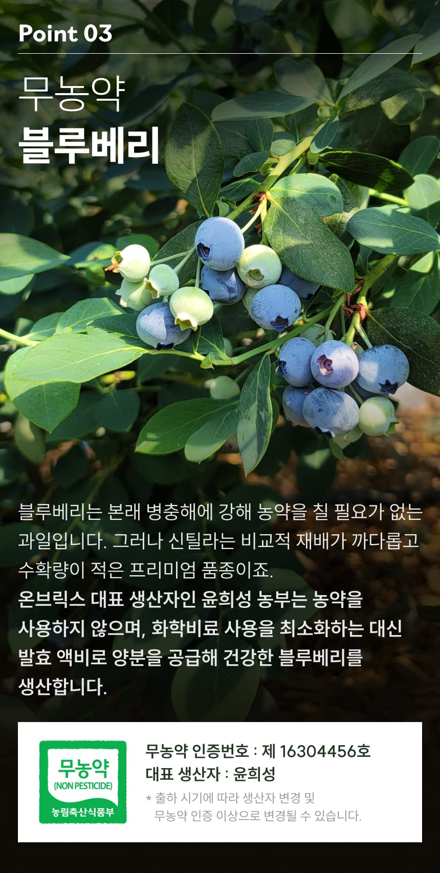 합성농약 없이 기른, 온리브릭스 무농약 신틸라 블루베리 (로열과/특대과)
