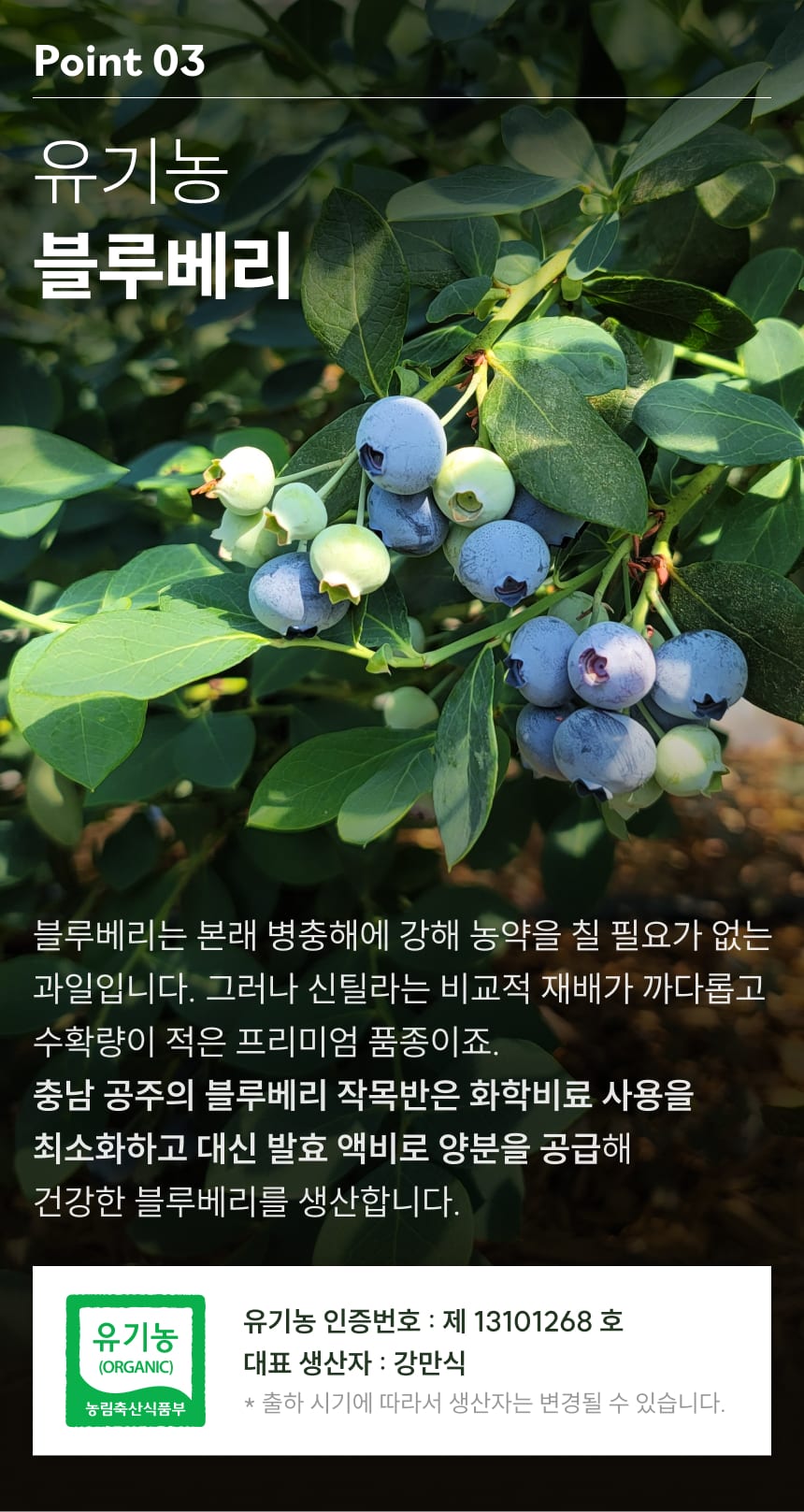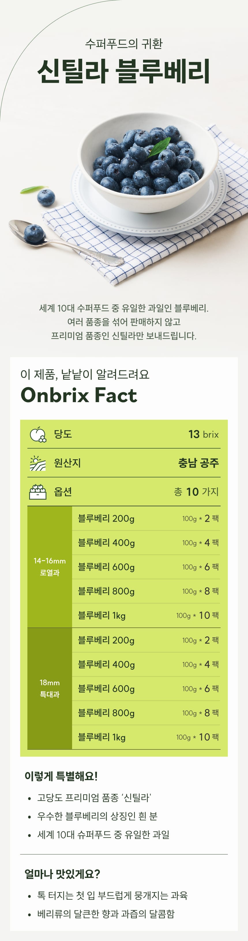 100% 유기농 프리미엄, 고당도 신틸라 블루베리 (로열과/특대과)