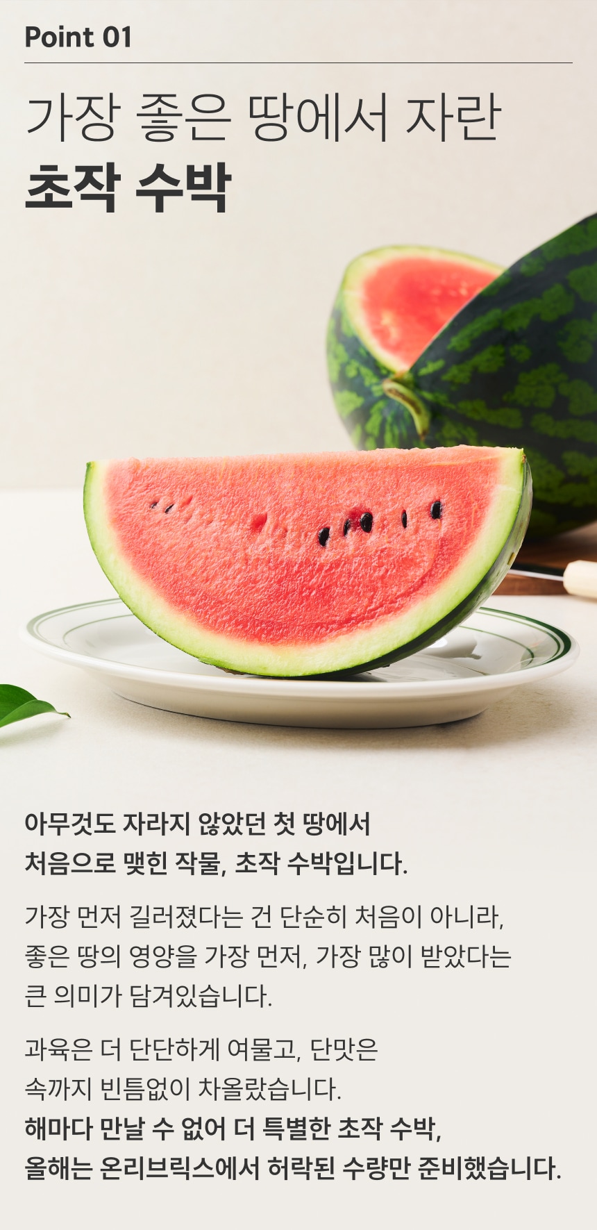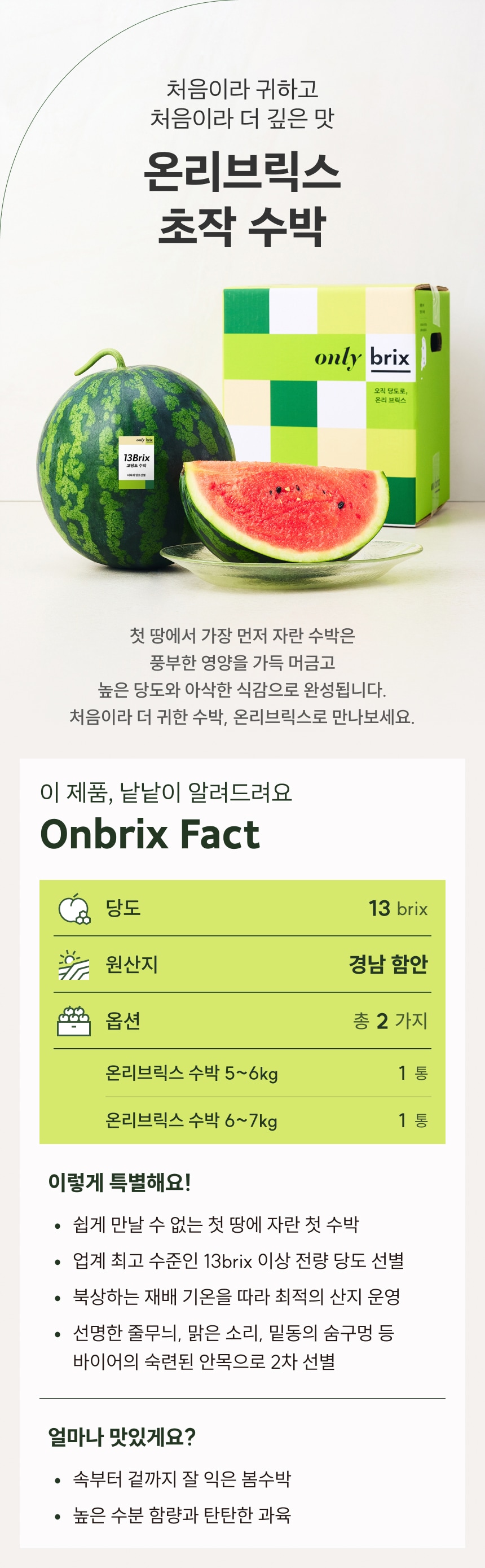 [새벽에On] 가장 좋은 땅에서 처음 길러낸, 온리브릭스 초작 수박 5kg / 6kg