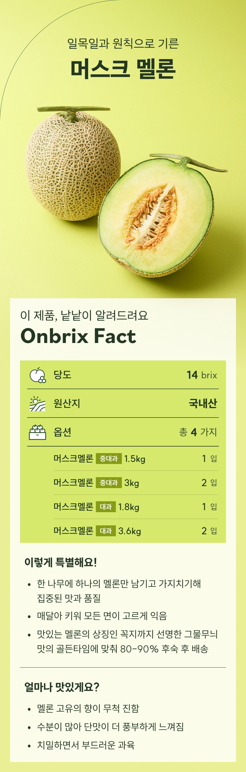 [새벽에On] 입 안 가득 퍼지는 달콤함, 고당도 머스크 멜론 1입 / 2입 (14brix)