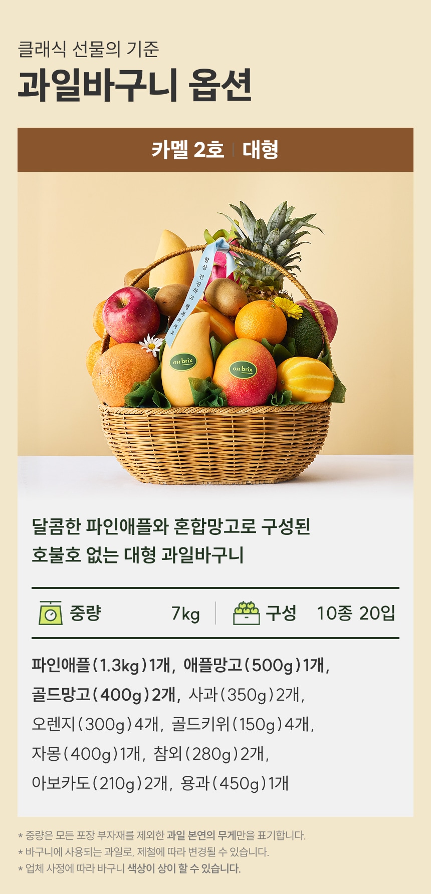 [새벽에On] 과일바구니, 카멜2호 10종 7kg이상(파인애플,혼합망고)