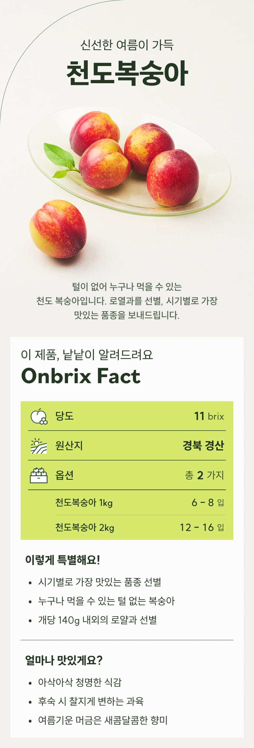 [새벽에On] 새콤달콤 속 노란, 천도 복숭아 1kg / 2kg