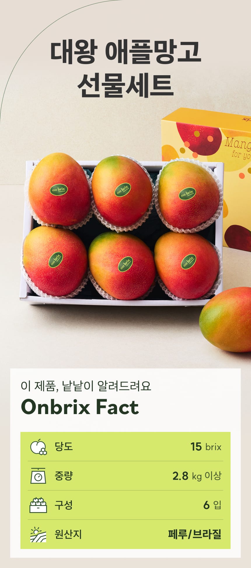 항공직송 고당도 대왕 애플망고 선물세트 2.8kg이상(6입/특품)