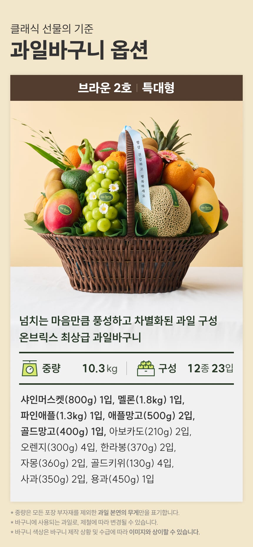 [새벽에On] [16일 새벽도착] 과일바구니, 브라운 2호 12종 10.3kg이상(샤인머스켓,멜론)