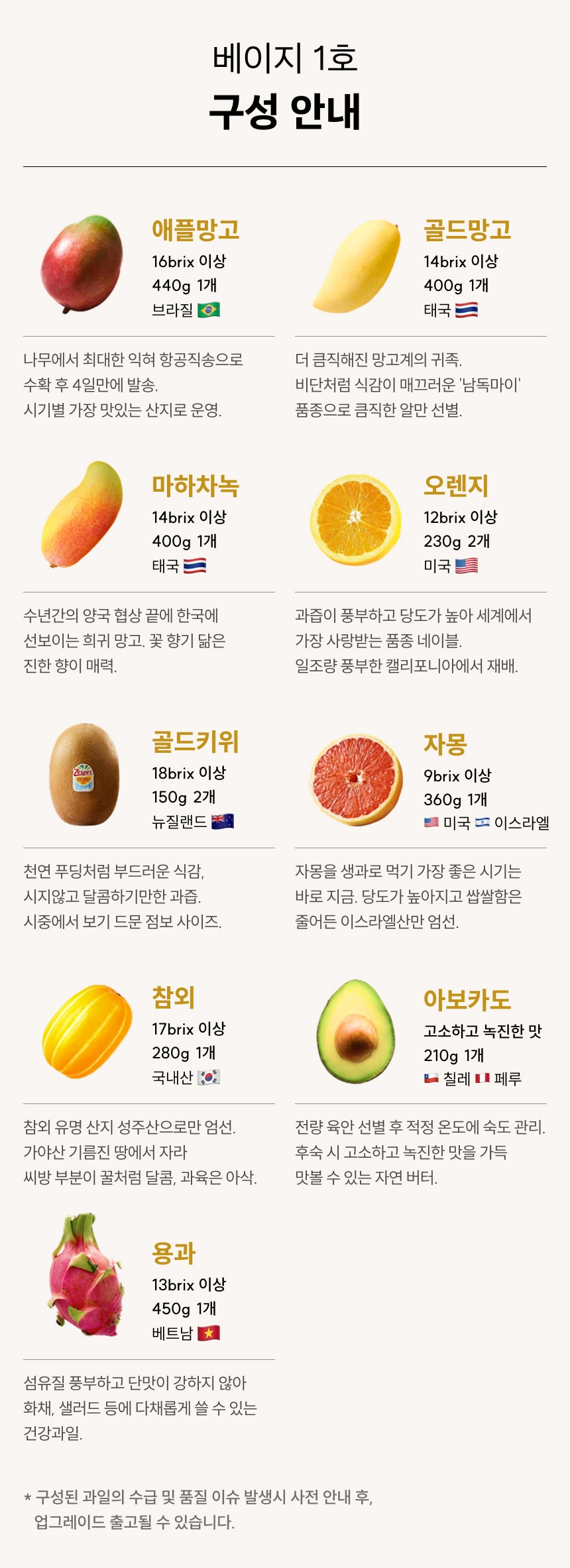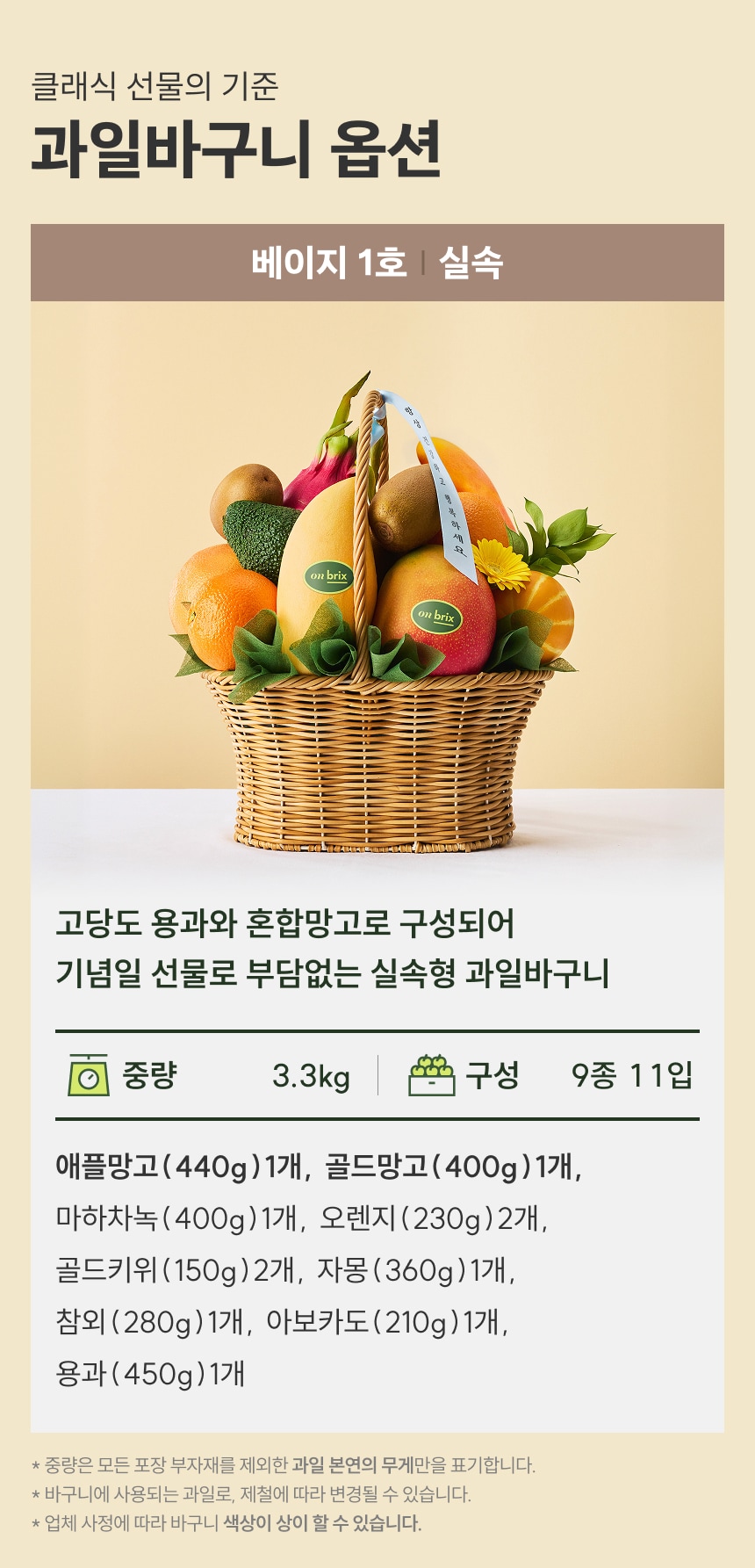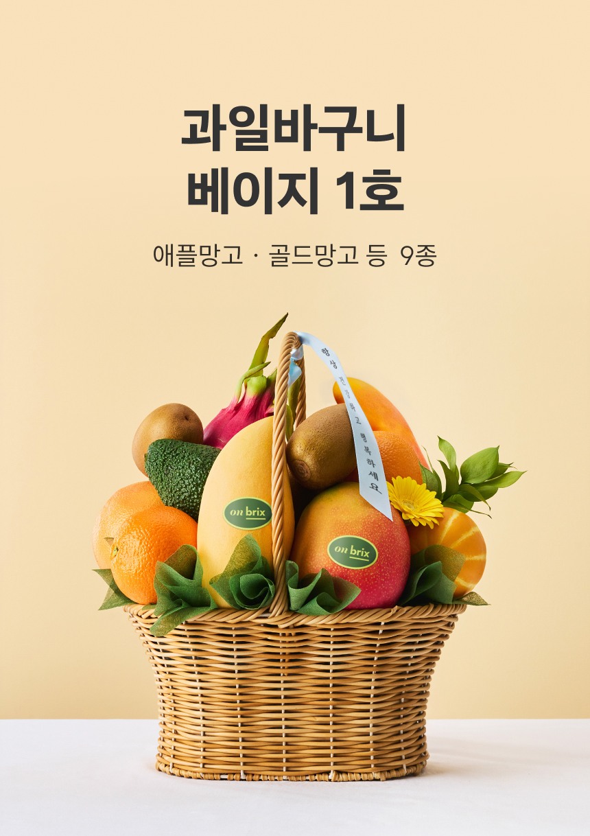 [새벽에On] 과일바구니, 베이지1호 9종 3.3kg이상(애플망고,골드망고)