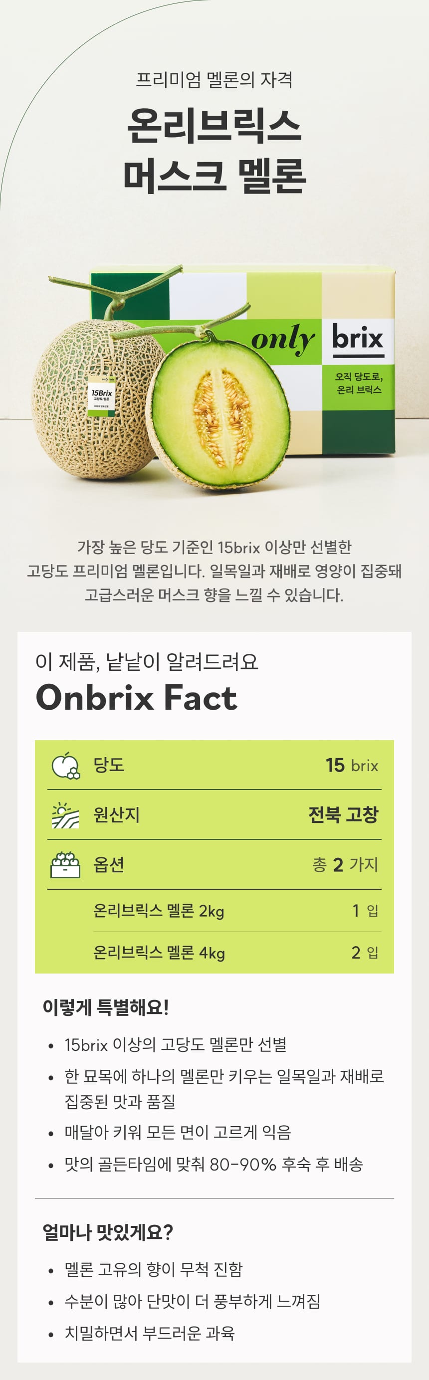 [새벽에On] 당도보장 프리미엄 온리브릭스 머스크 멜론 2kg / 4kg (15Brix)