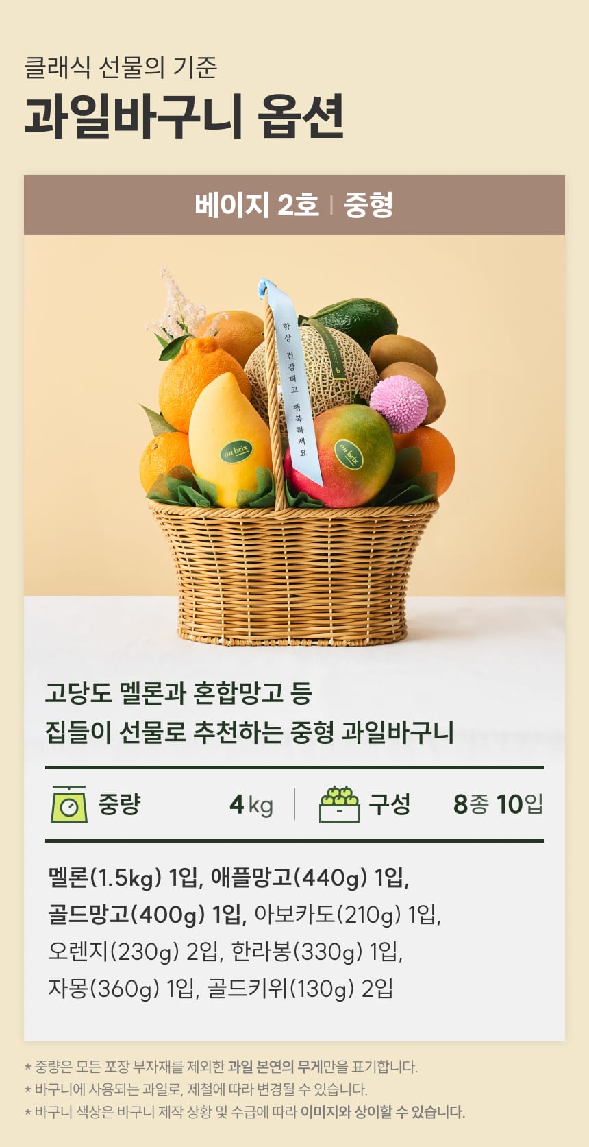 과일바구니, 베이지2호 8종 4kg이상(멜론,혼합망고)