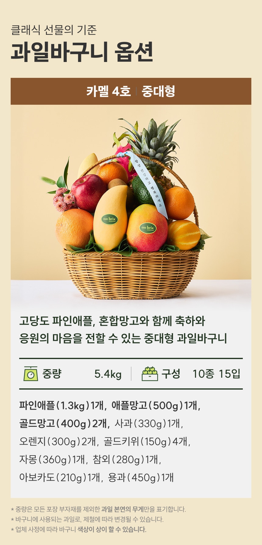 • [새벽에On] 과일바구니, 카멜4호 10종 5.4kg이상(파인애플,혼합망고)