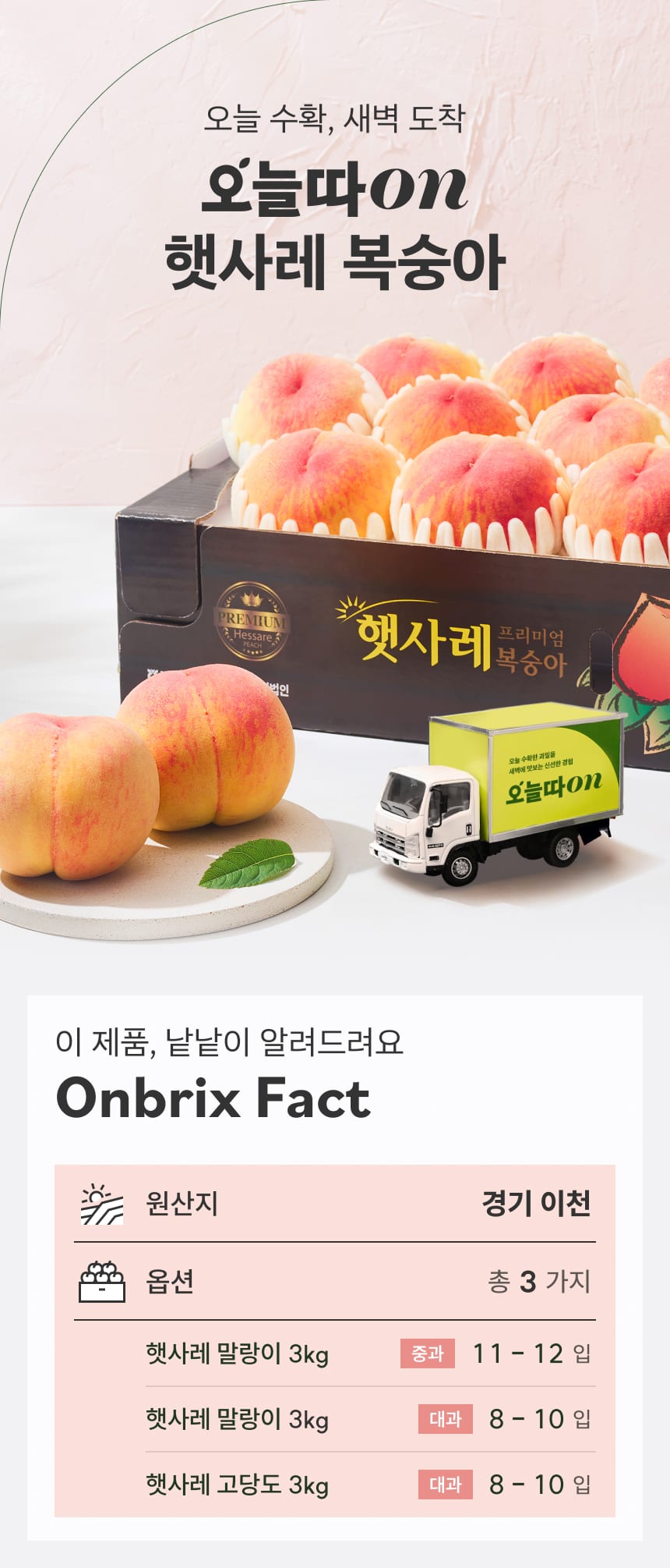 [오늘따On] 프리미엄 고당도 햇사레 말랑이 복숭아 3kg (중과/대과)