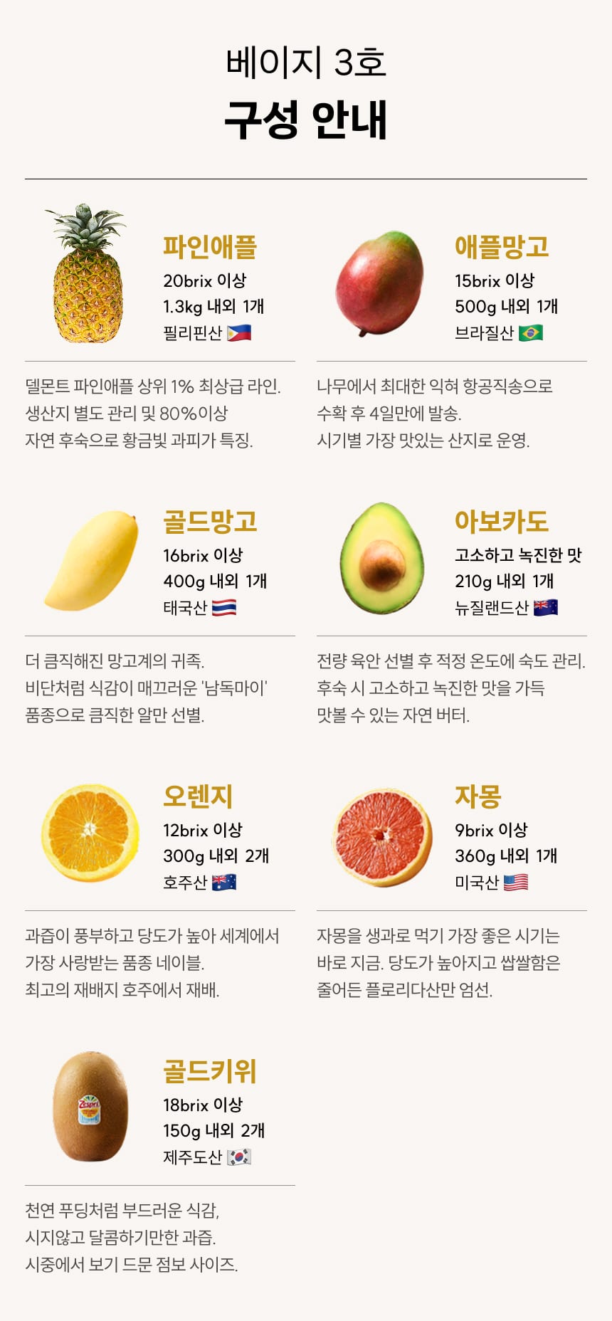 [오늘On] 과일바구니, 베이지3호 7종 4kg이상(파인애플,혼합망고)