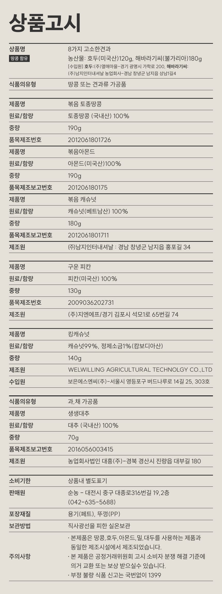 상품명 | 견과류 8종 |
