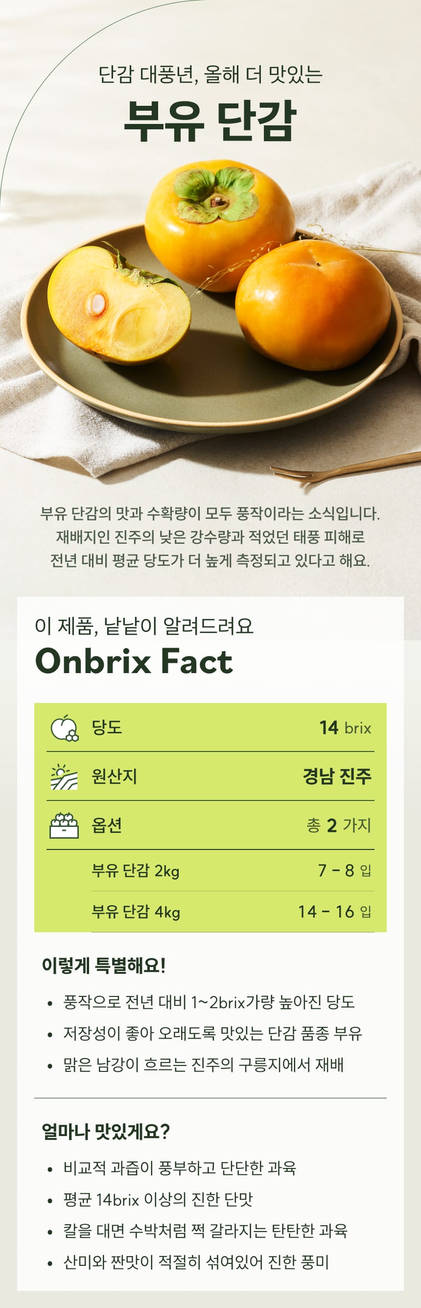 [새벽에On] 지리산이 키운, 아삭한 식감의 고당도 부유 단감 2kg / 4kg (특품)