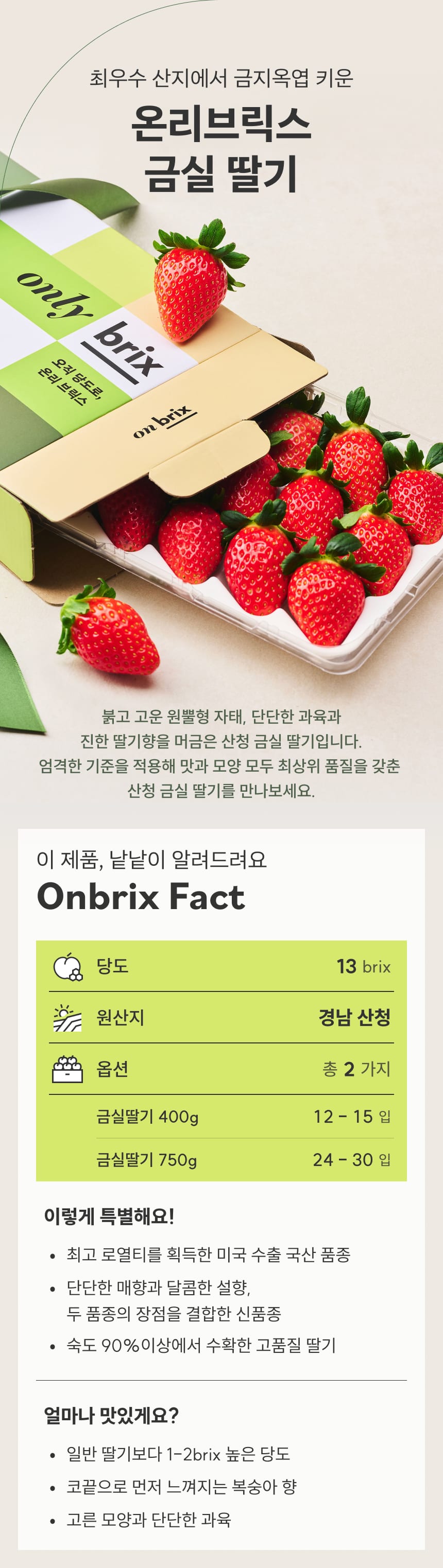 [산지직송] 국내 최고 등급, 온리브릭스 산청 금실 딸기 400g / 750g(특품)